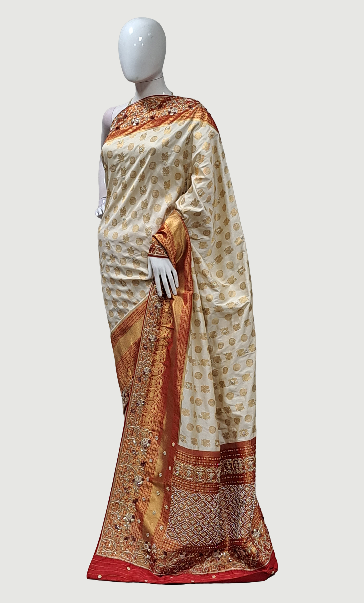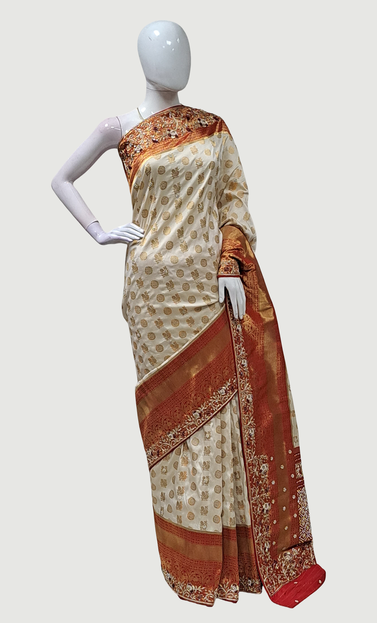 Light Biscuit Embroidered Pure Silk Sari