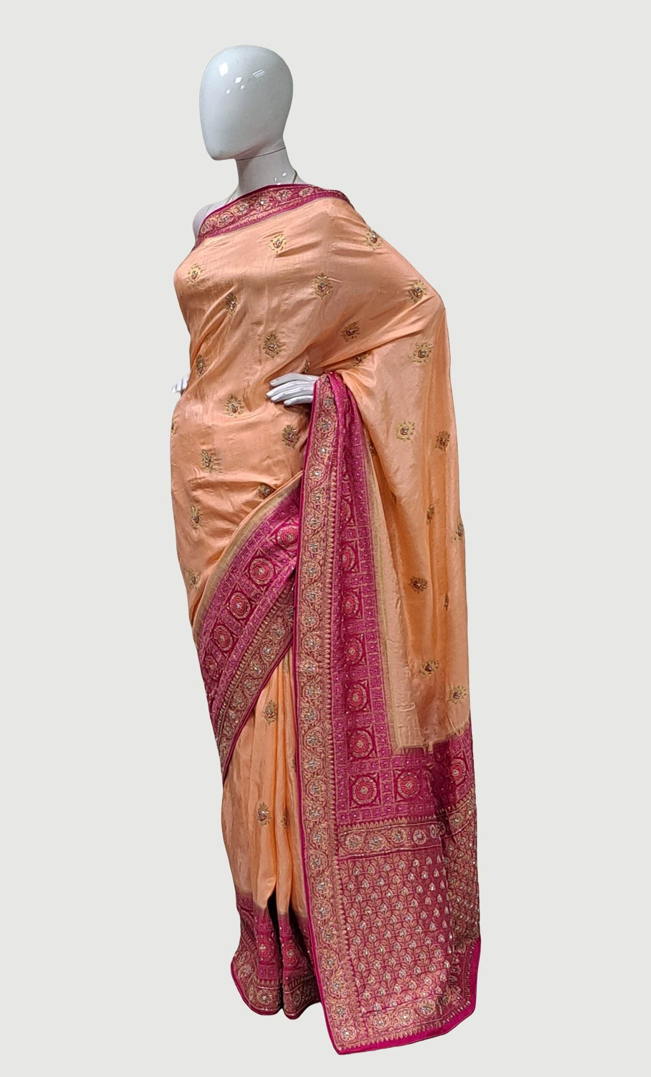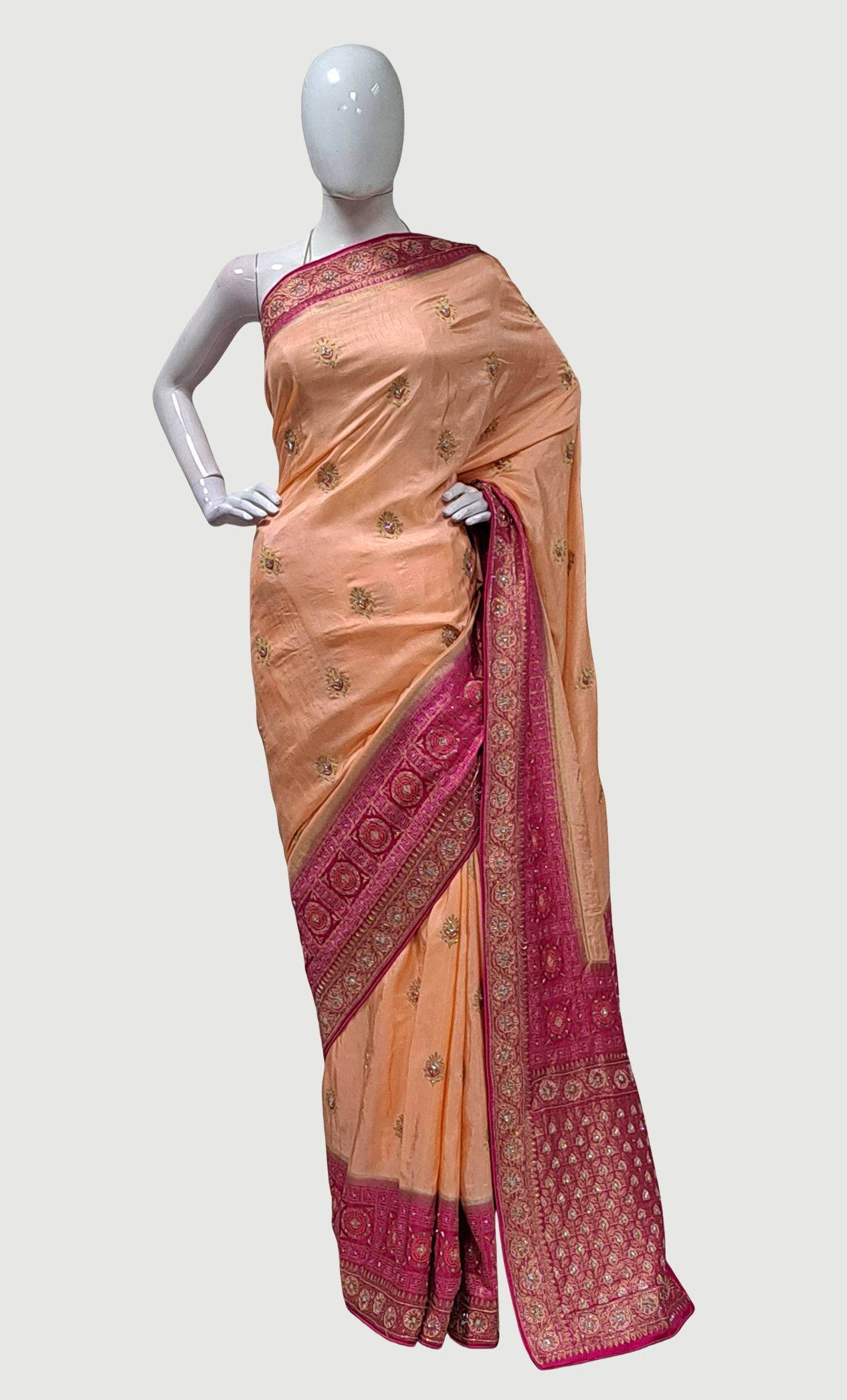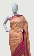 Peach Embroidered Pure Silk Sari