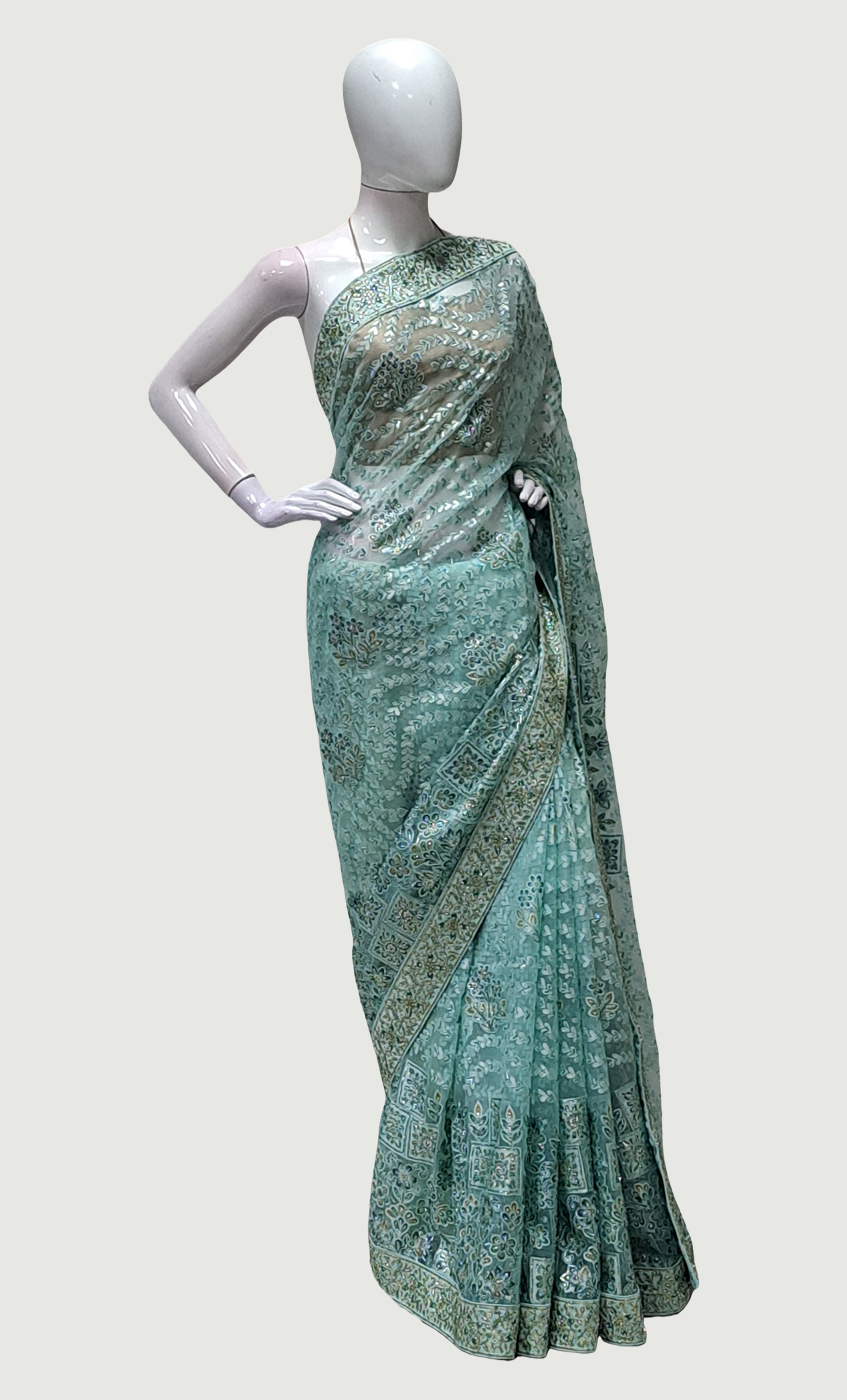 Sea Green Embroidered Sari