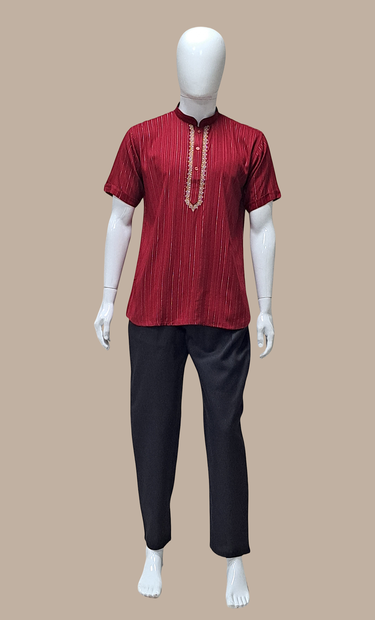 Dark Red Embroidered Kurta Top
