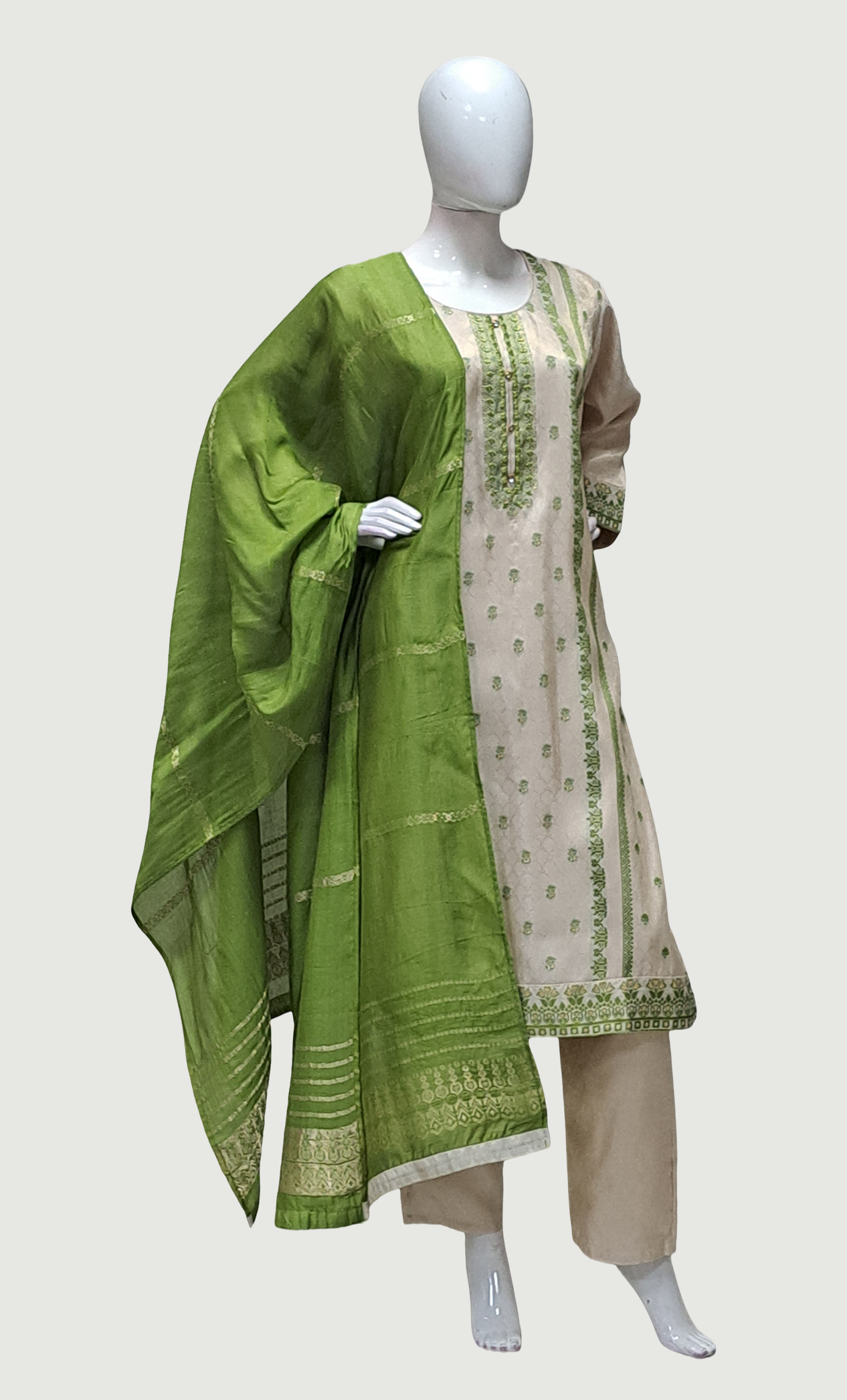 Biscuit Embroidered Punjabi