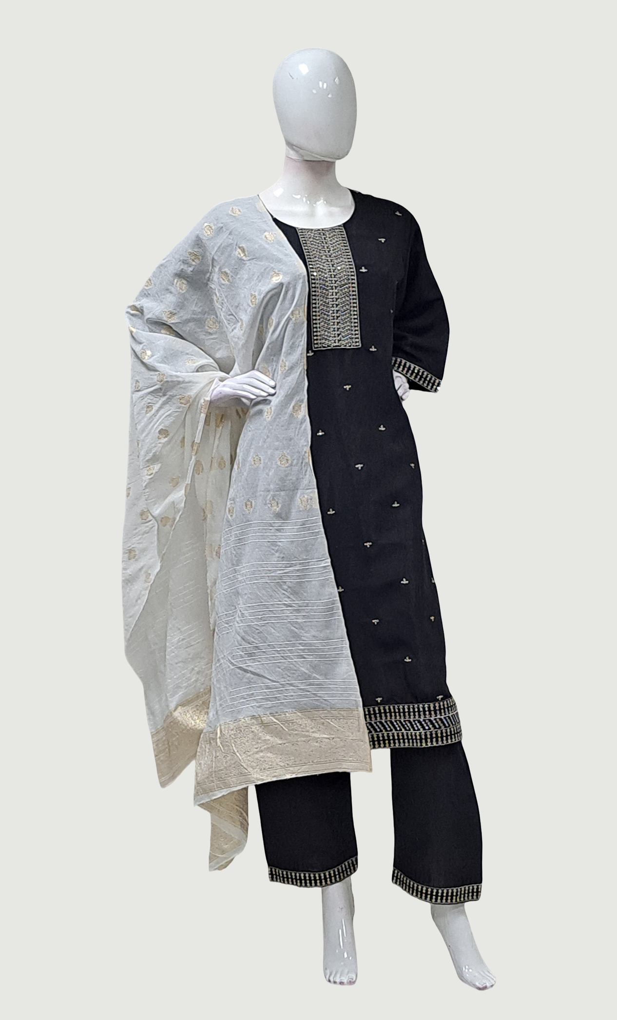 • Front grey cotton embroidered designs