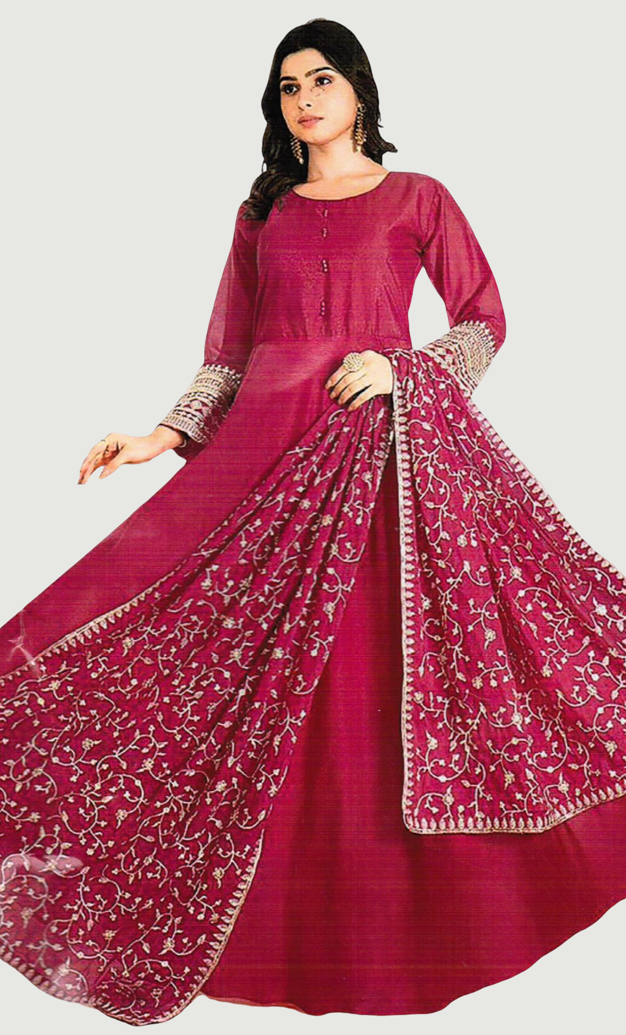 Cerise Embroidered Gown & Dupatta