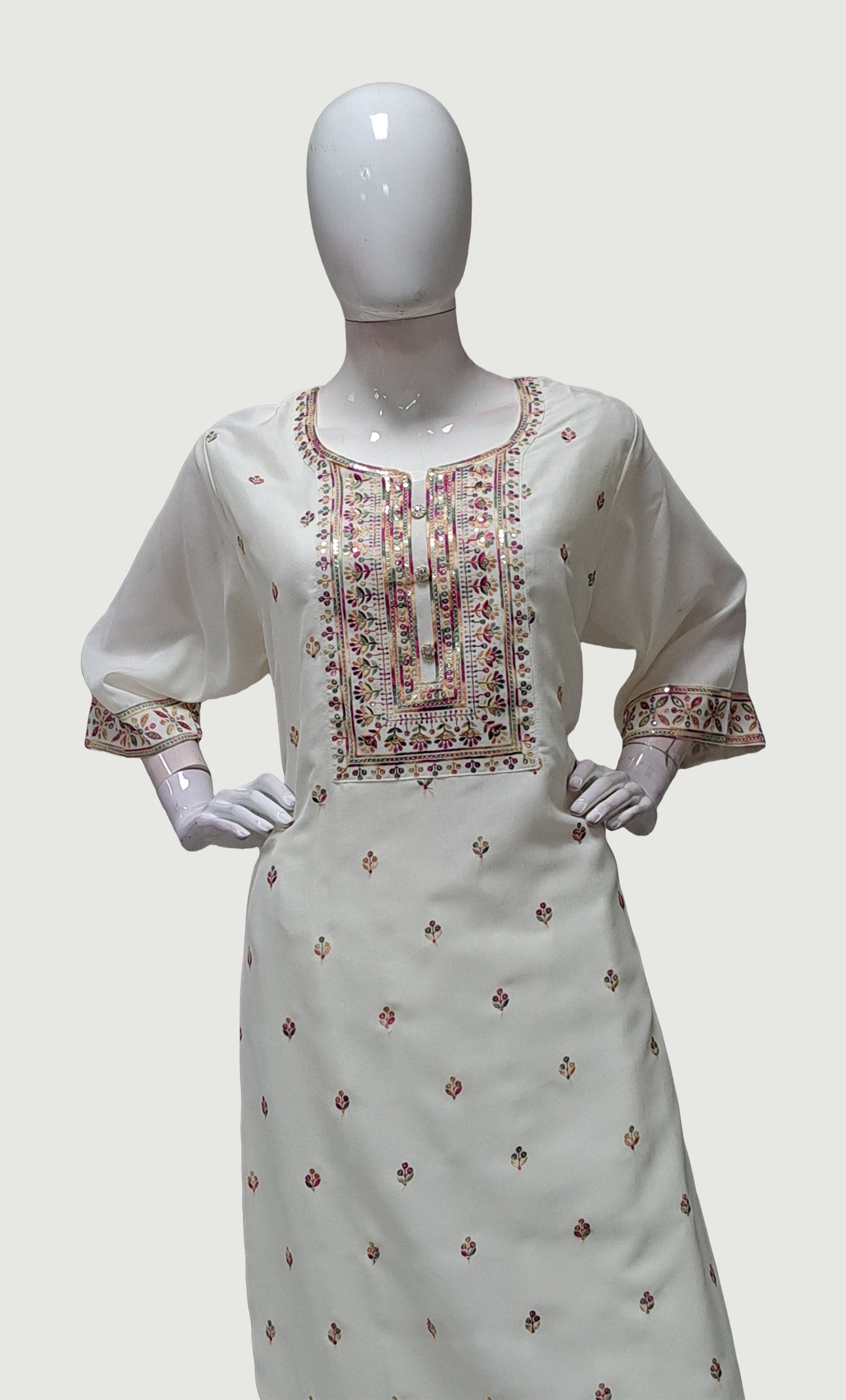 Cream Embroidered Punjabi