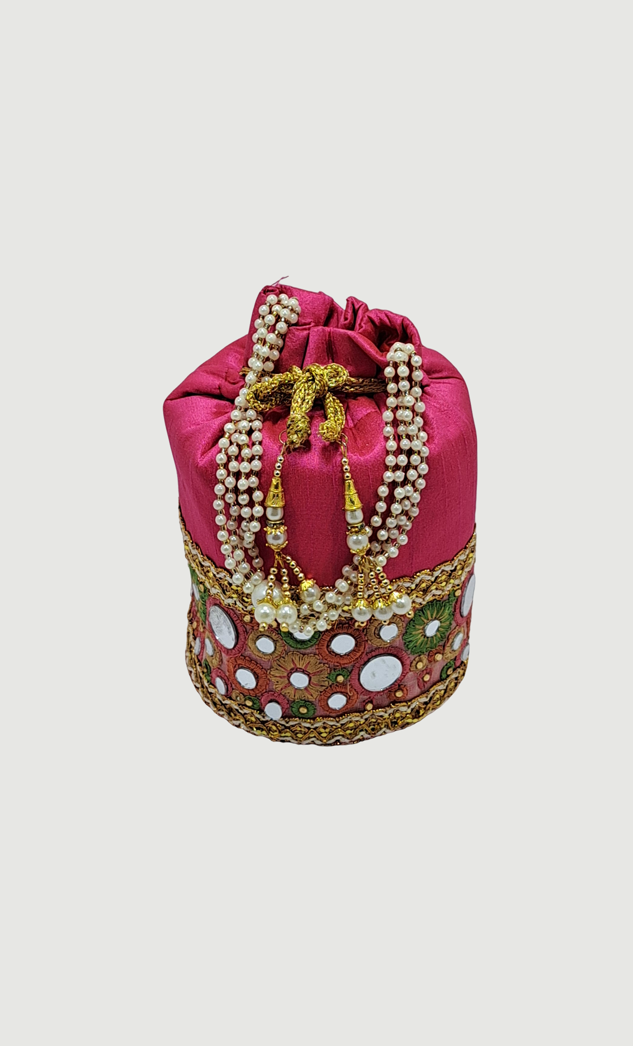 Cerise Embroidered Pouch Bag