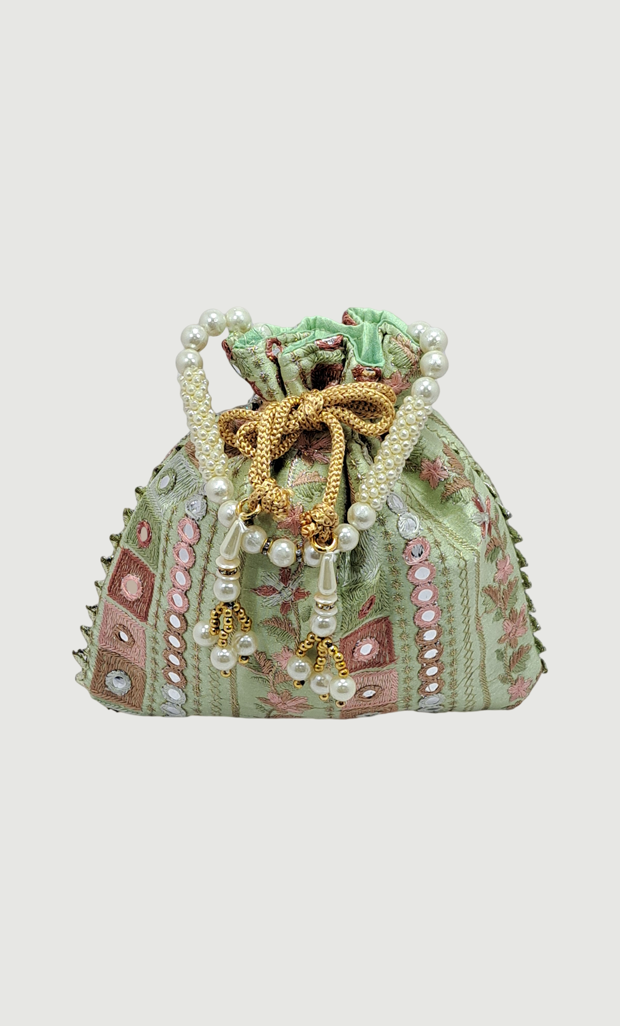 Mint Embroidered Pouch Bag