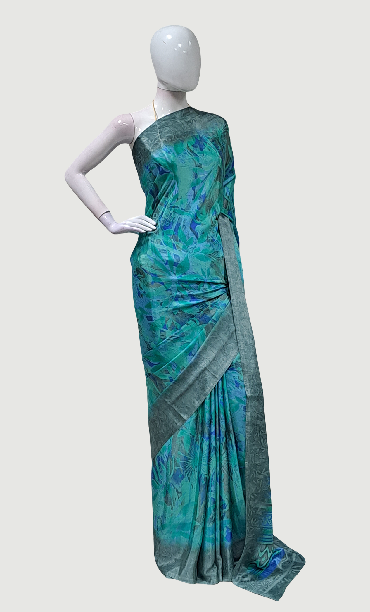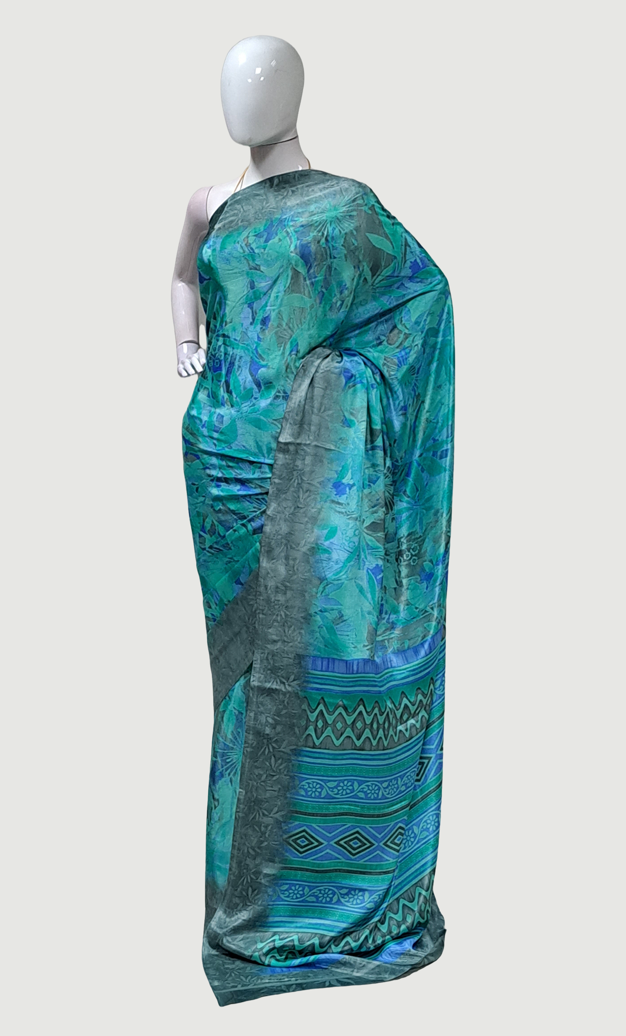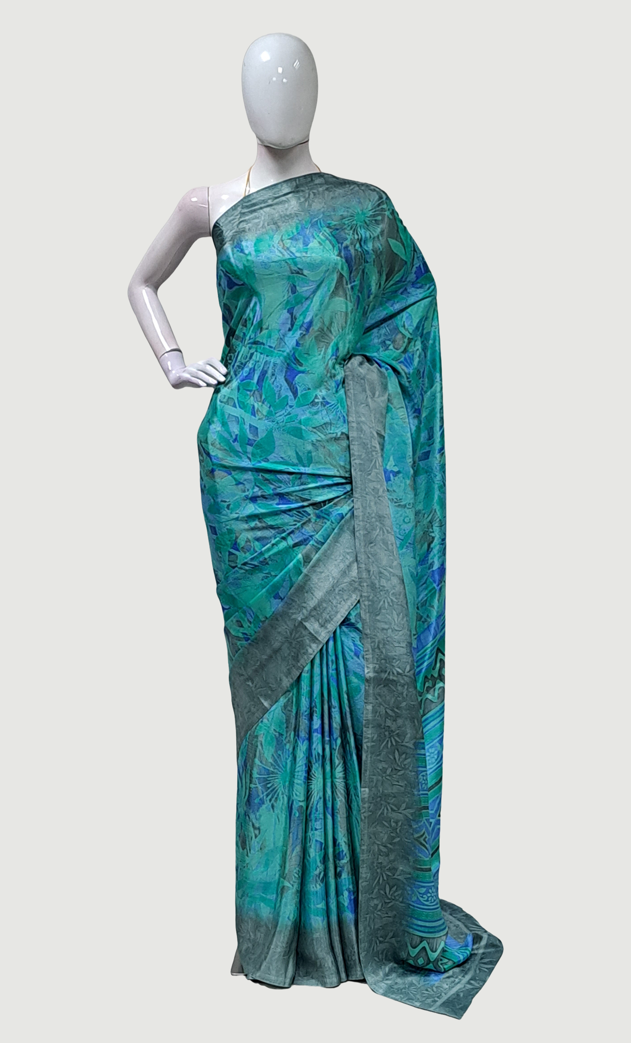 Aqua Green Printed Sari