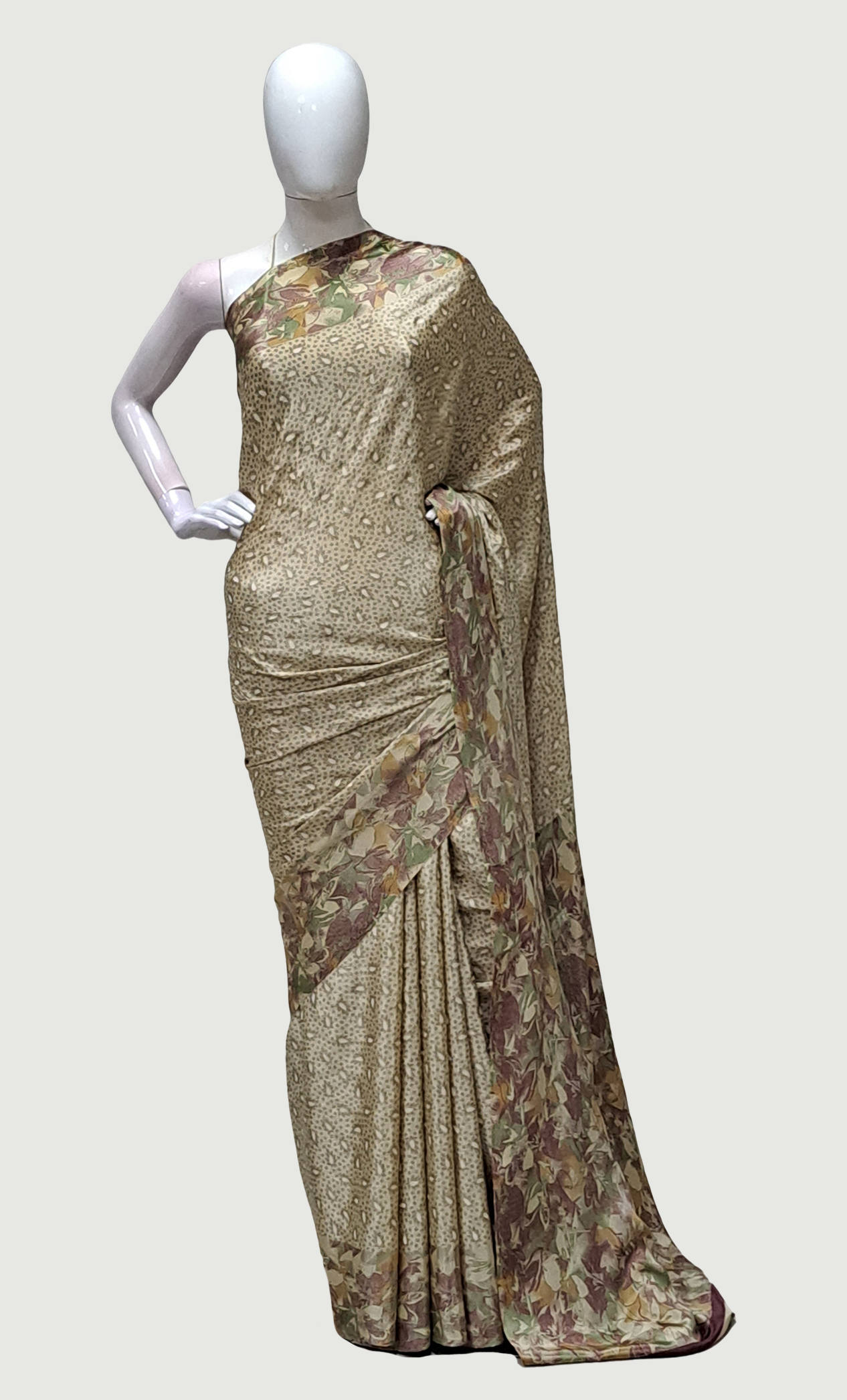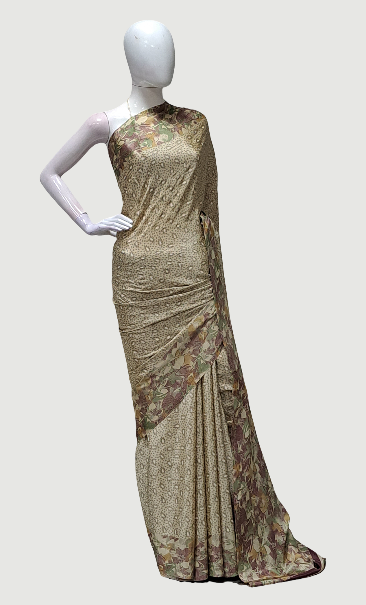 Beige Printed Sari