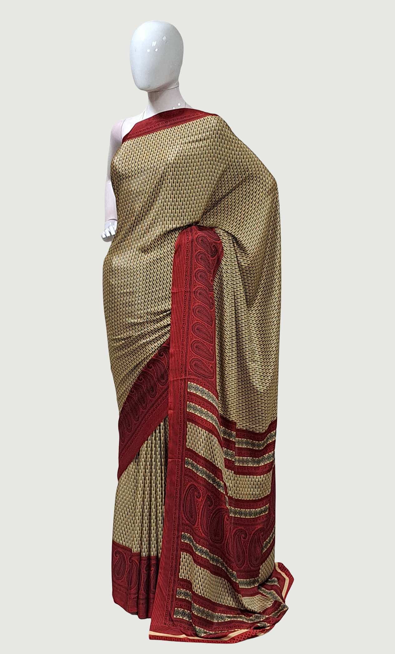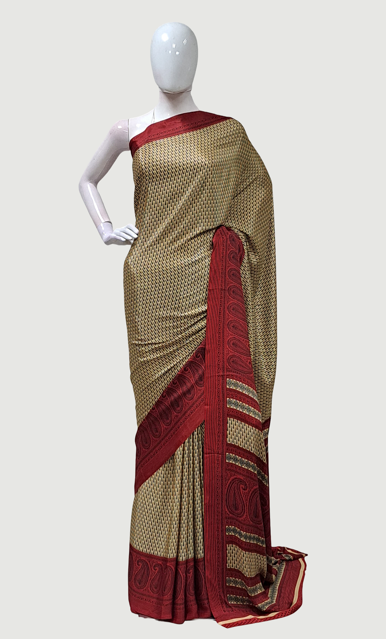 Beige Printed Sari