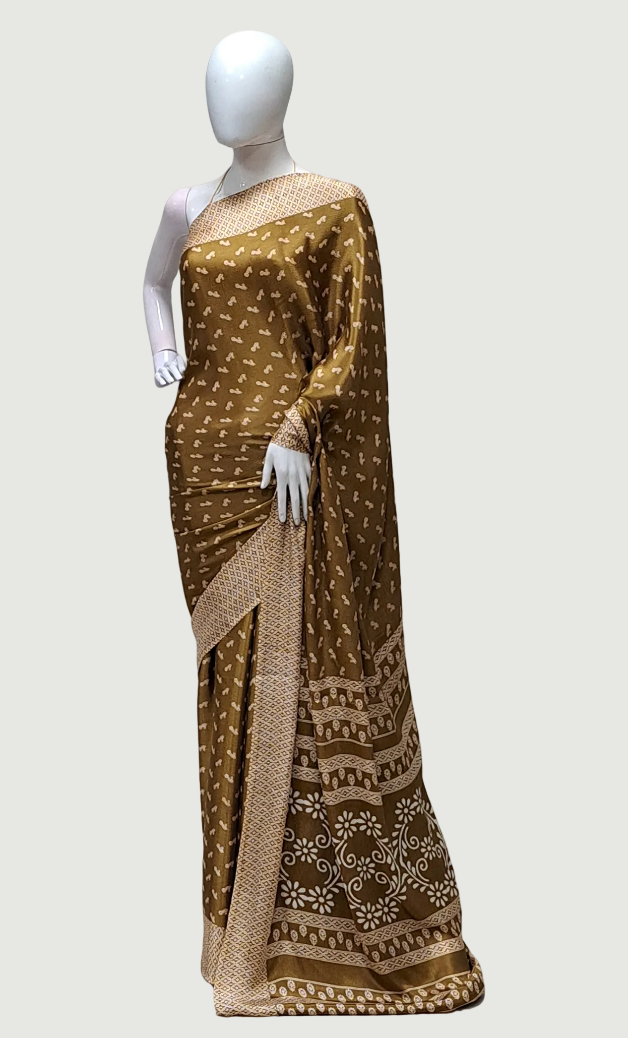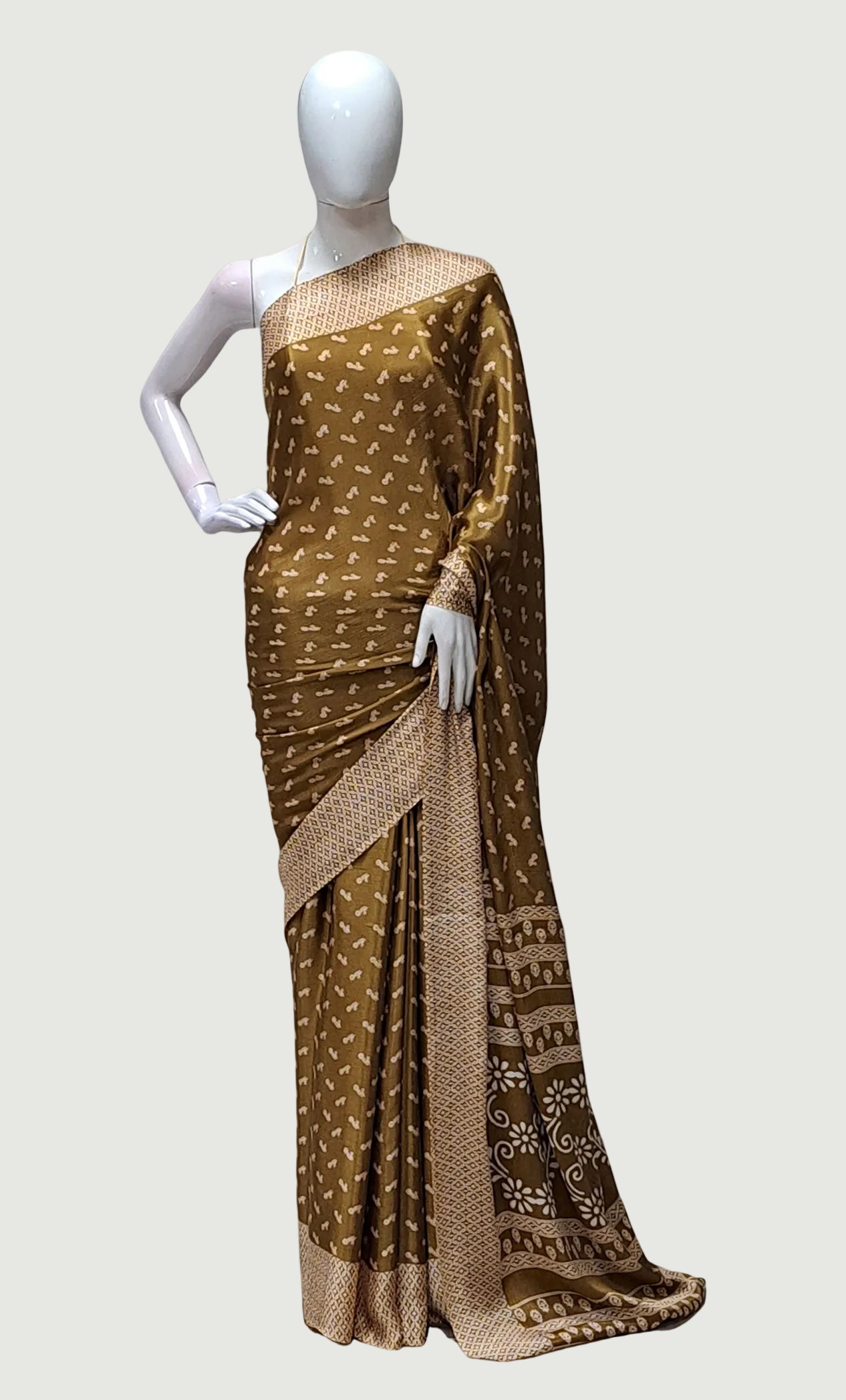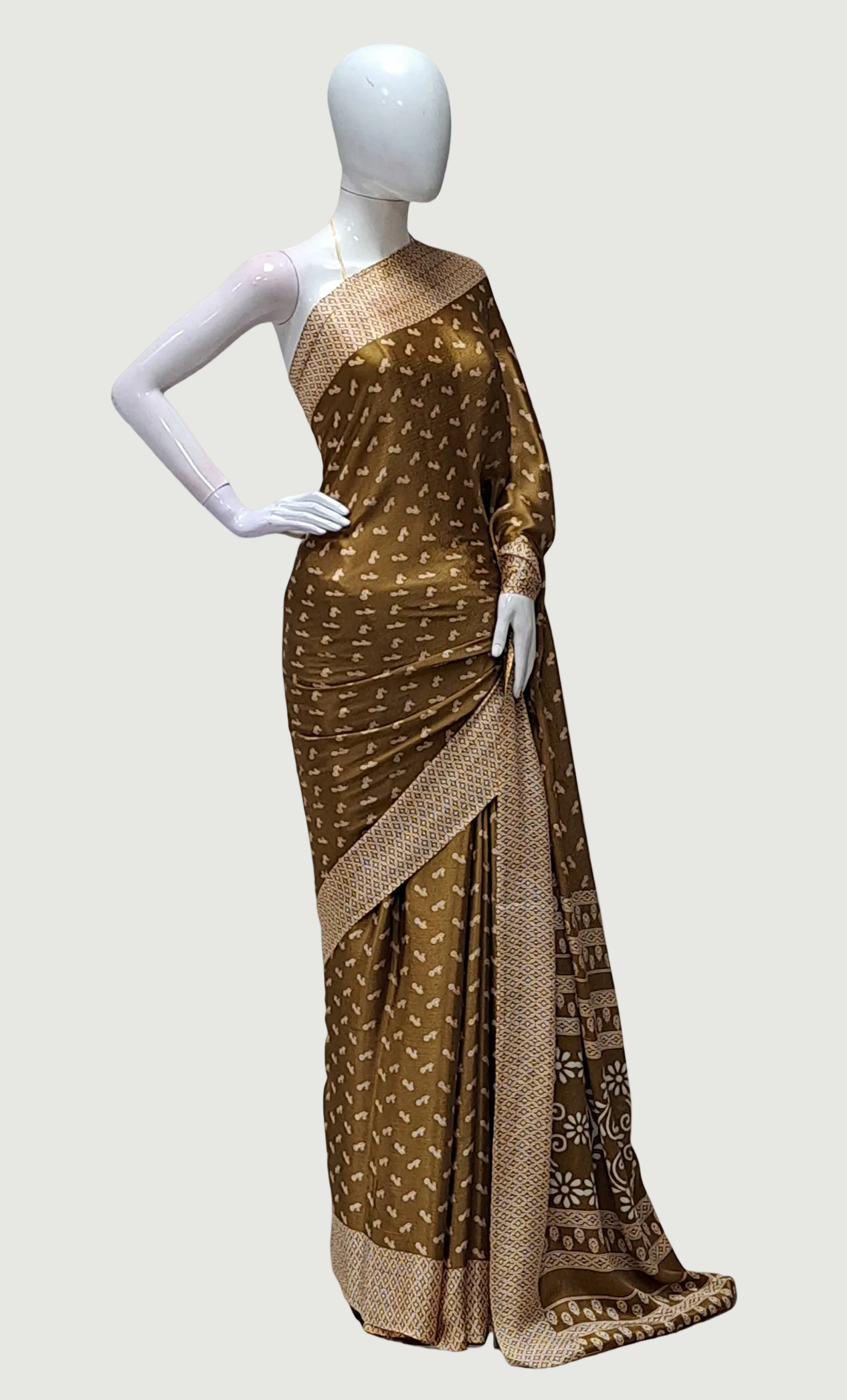 Deep Khaki Printed Sari