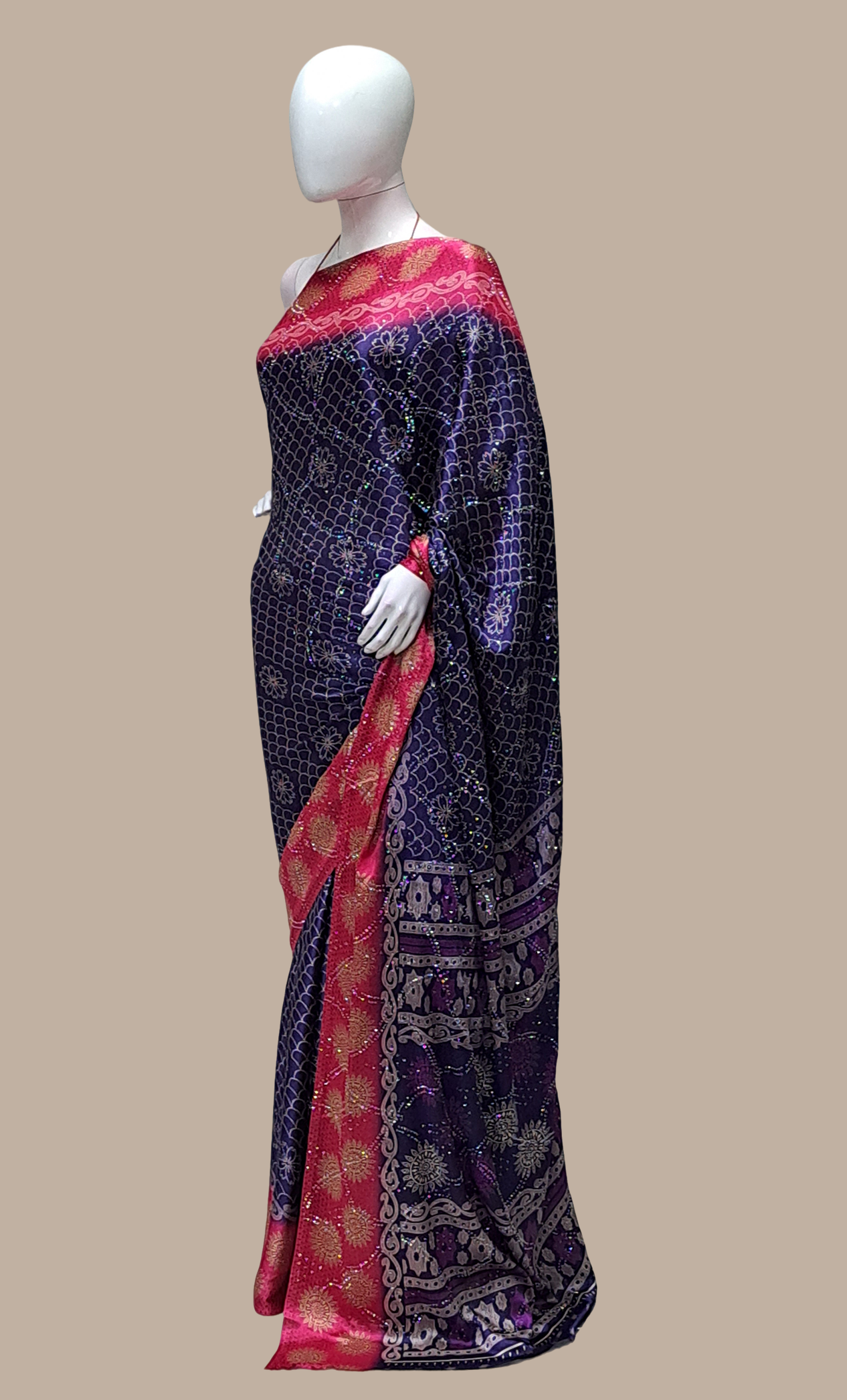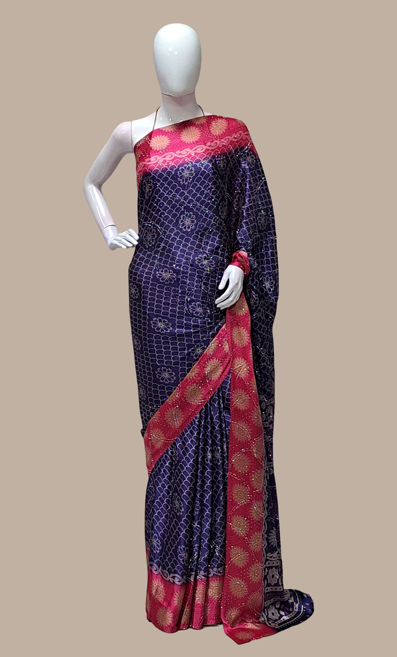 Navy Printed Sari