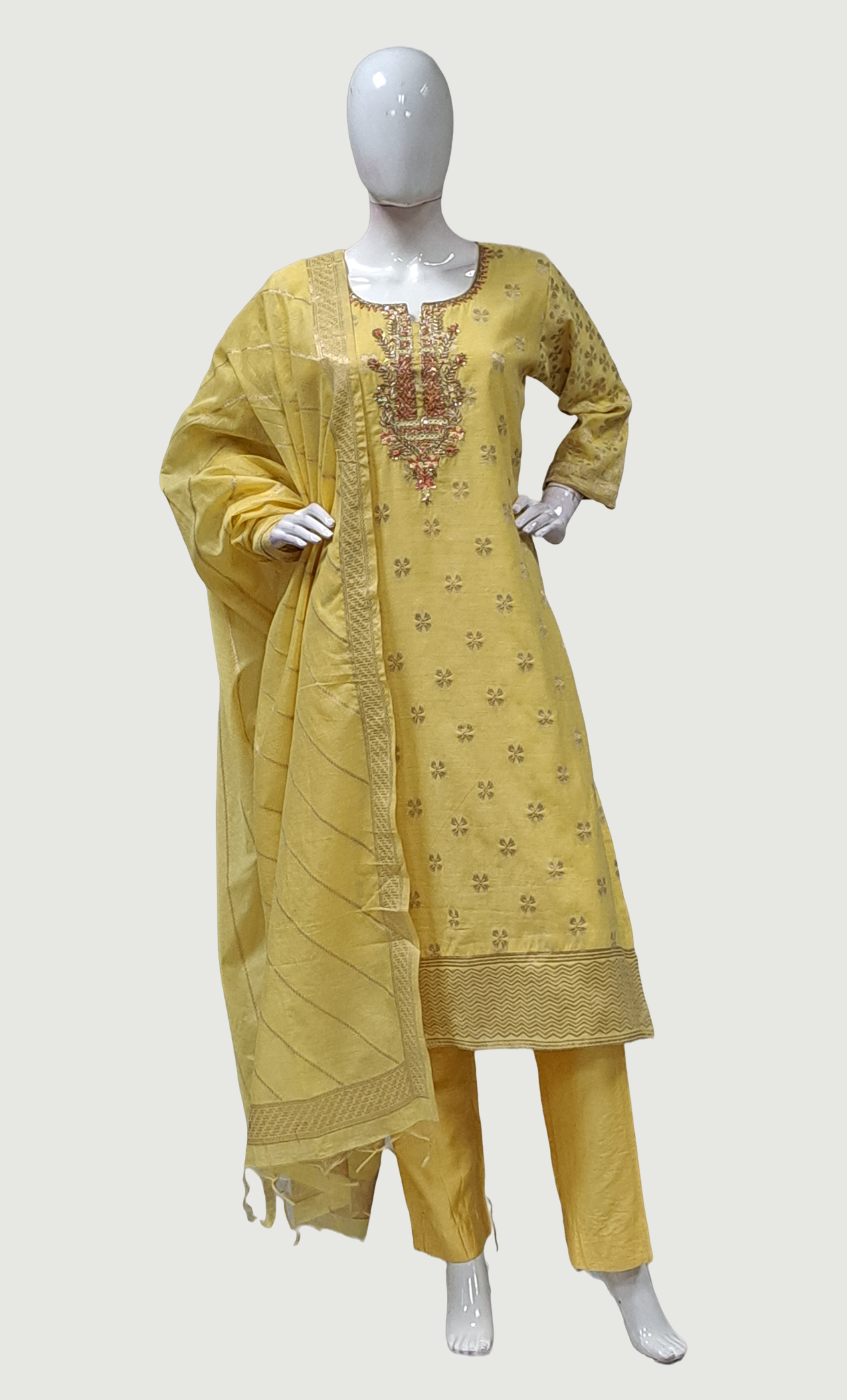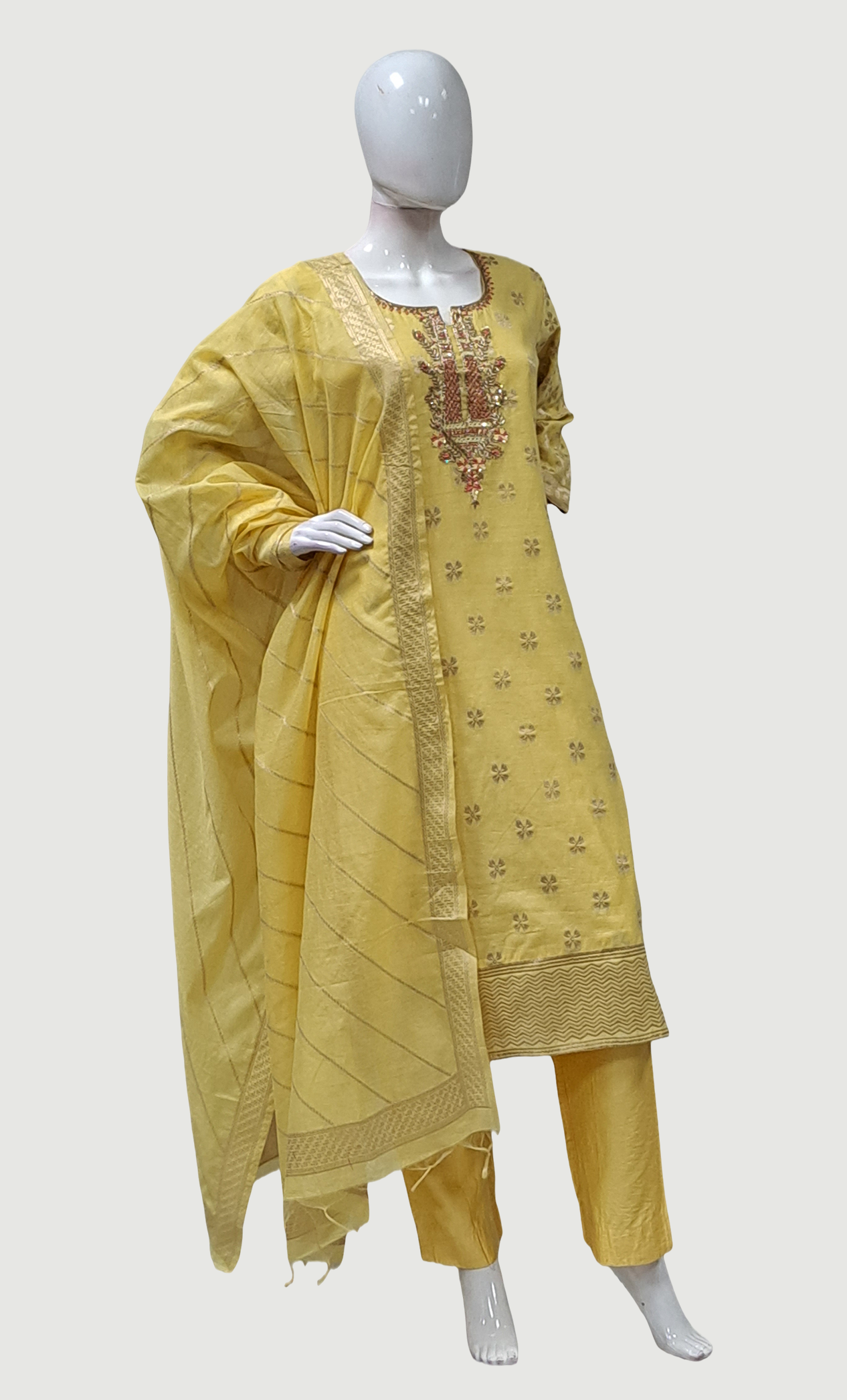 - Cotton embroidered detail with gold beadwork & sequin finish