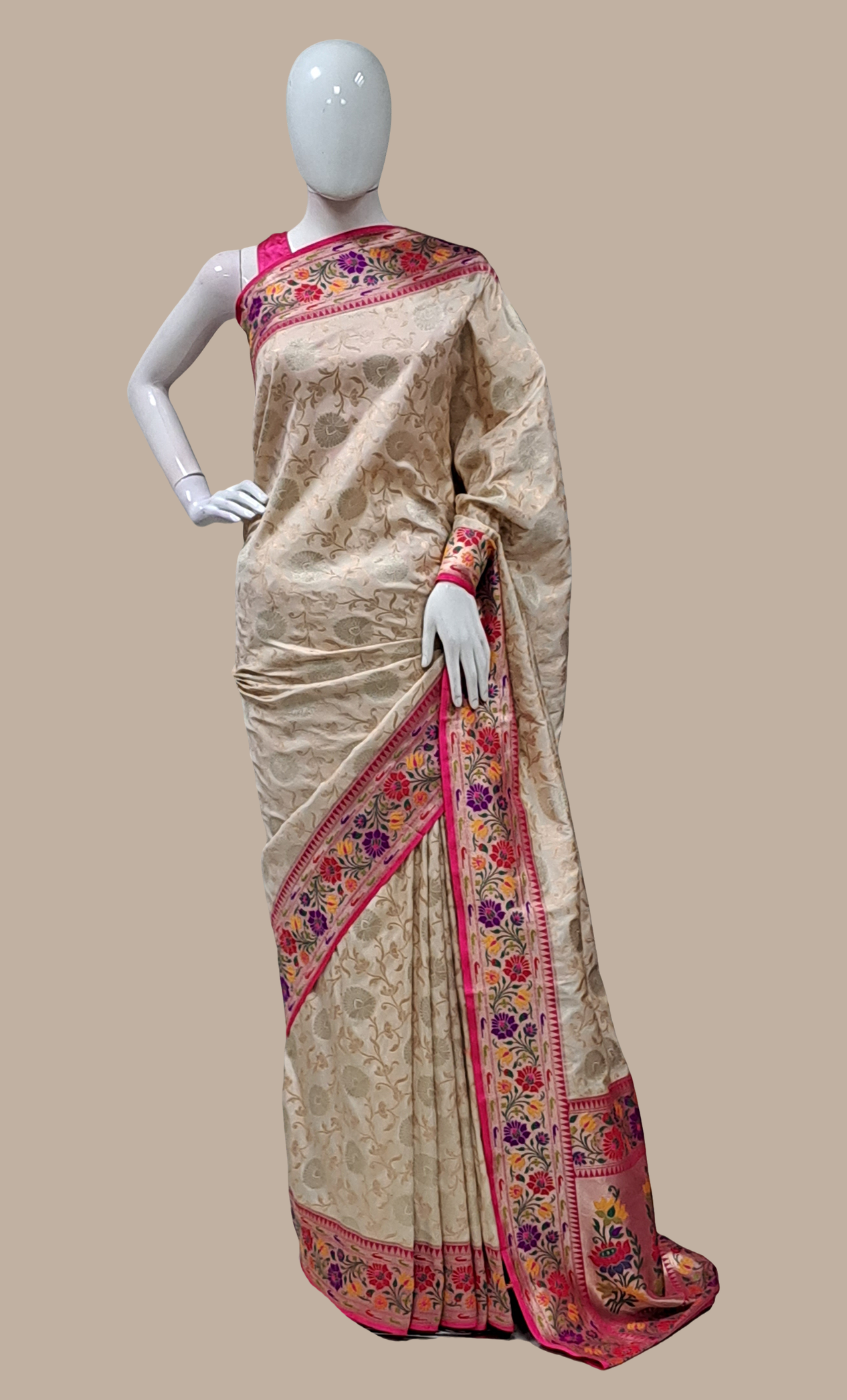 Cream Woven Art Silk Sari