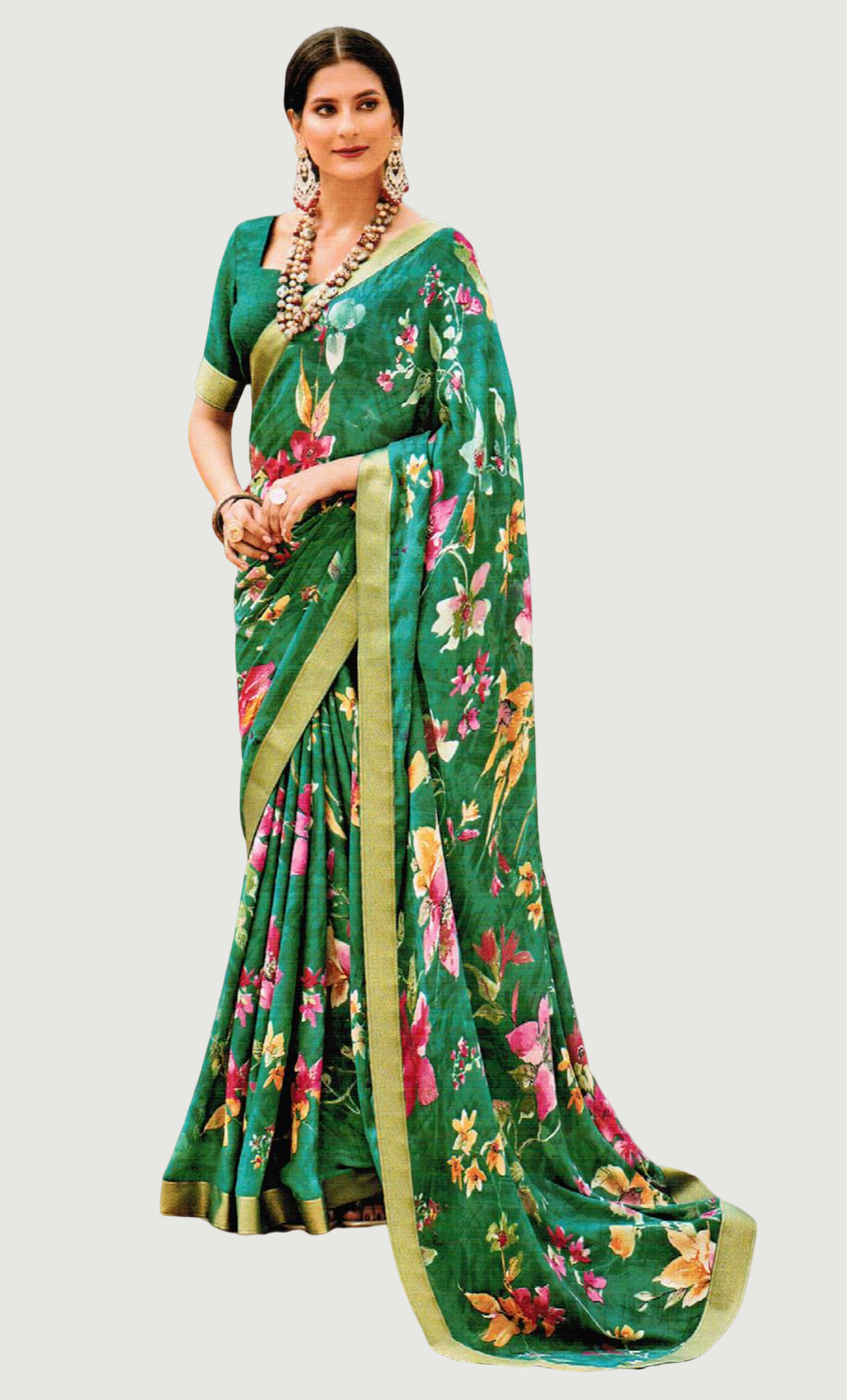 Deep Green Printed Sari
