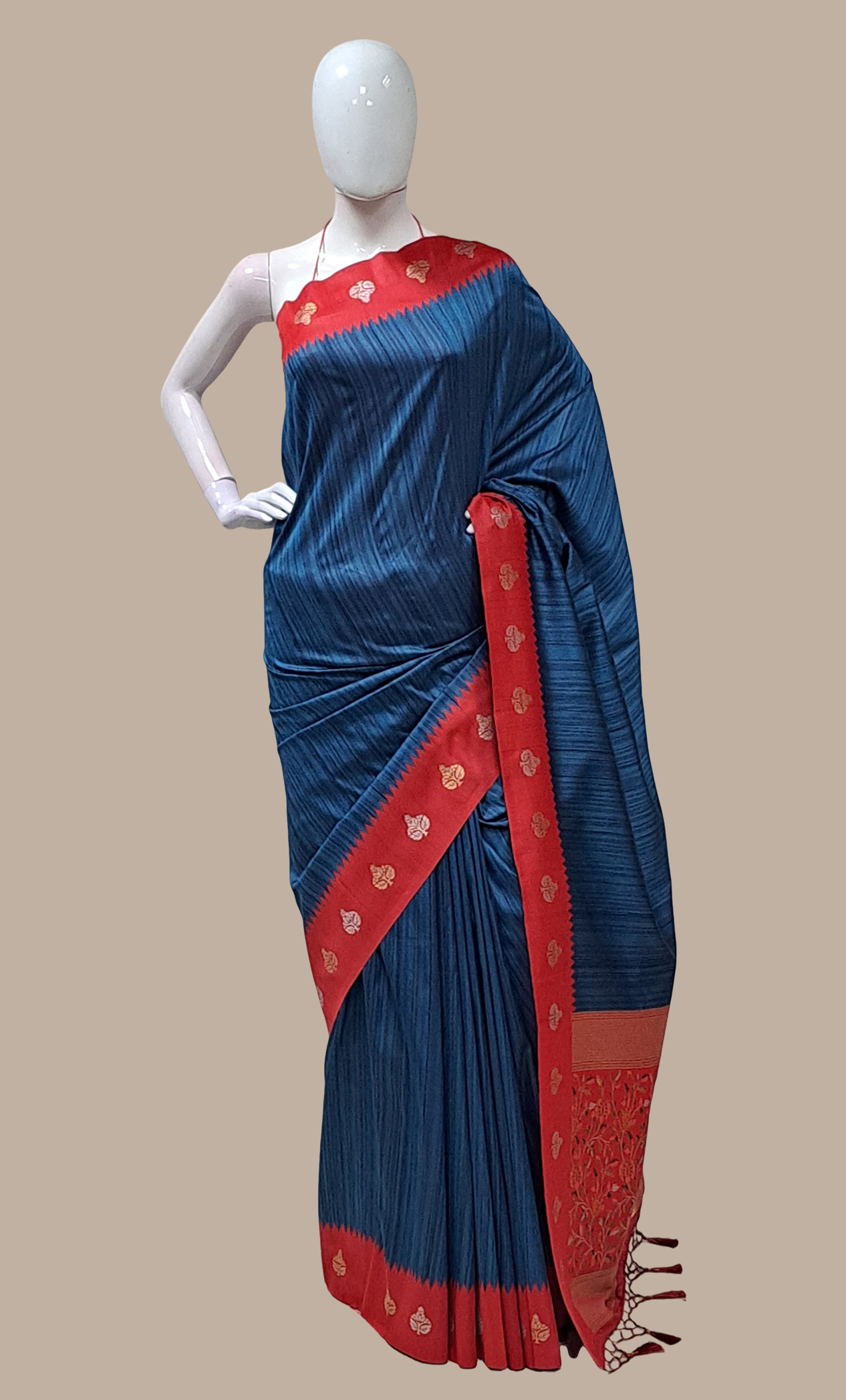 Deep Teal Art Silk Sari