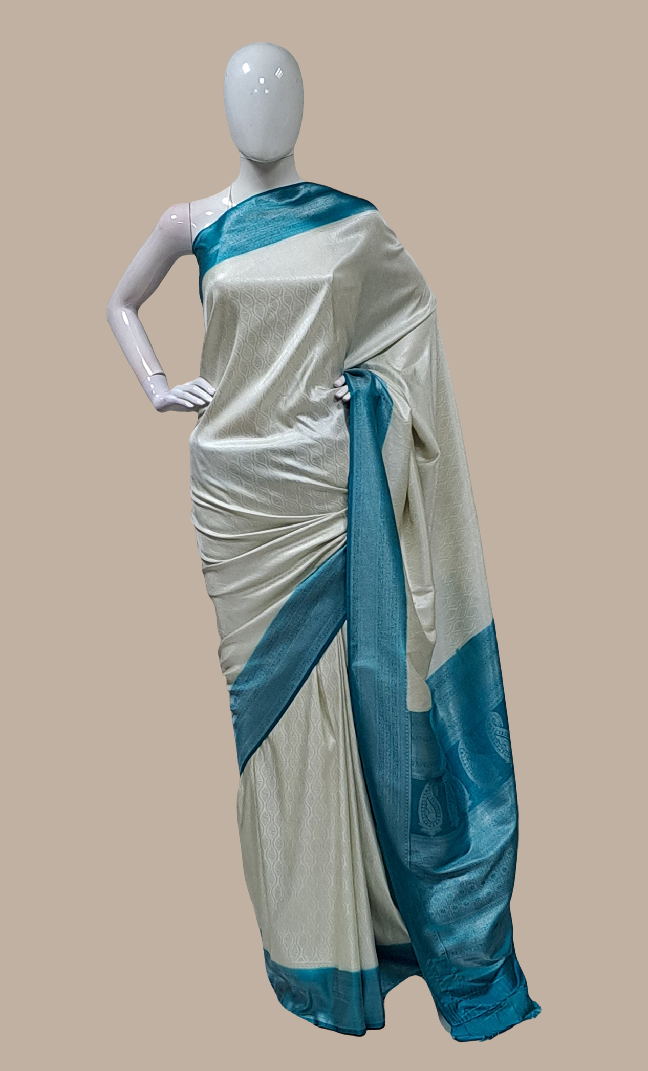 Light Cream Woven Art Silk Sari