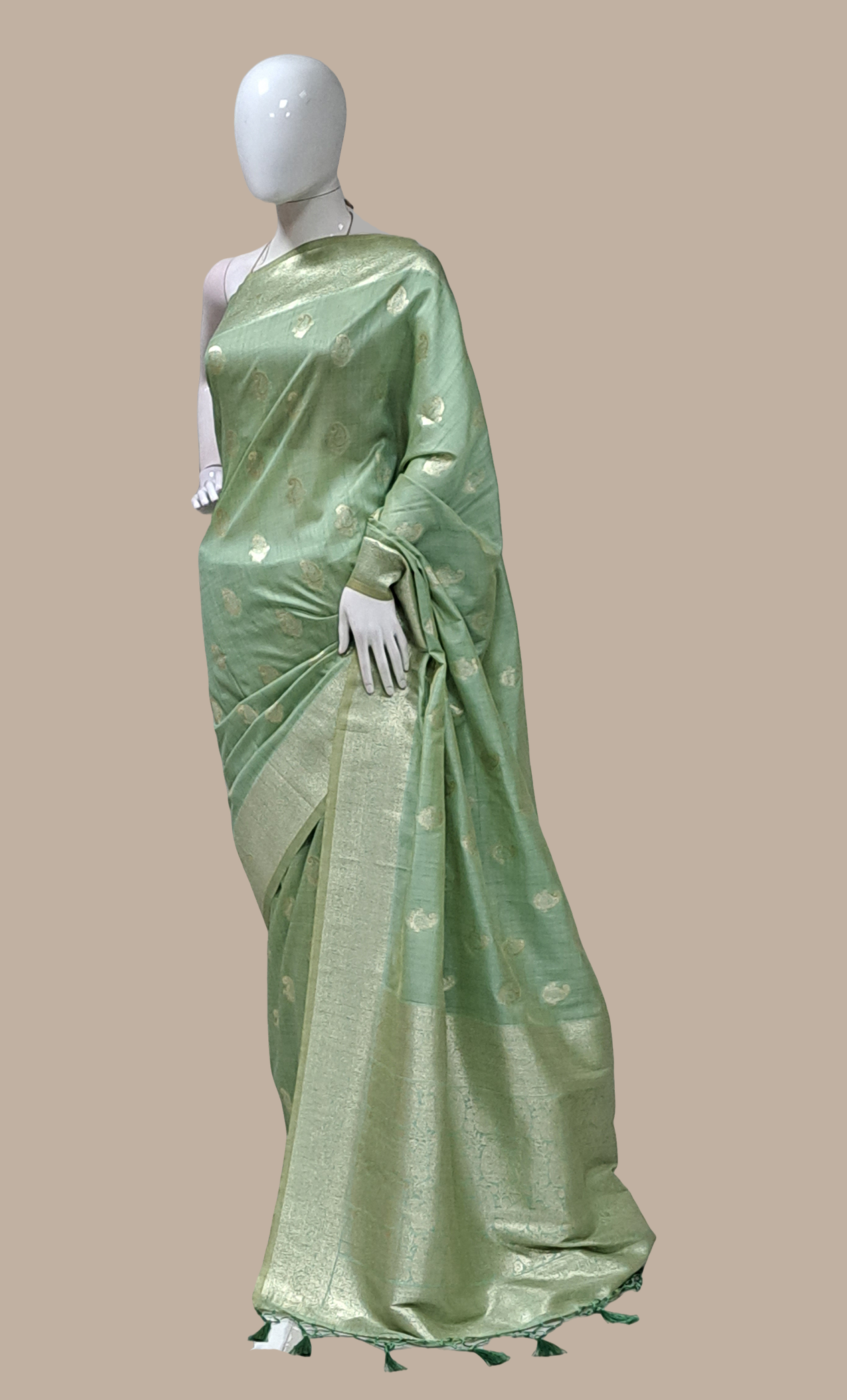 Pale Mint Woven Art Silk Sari