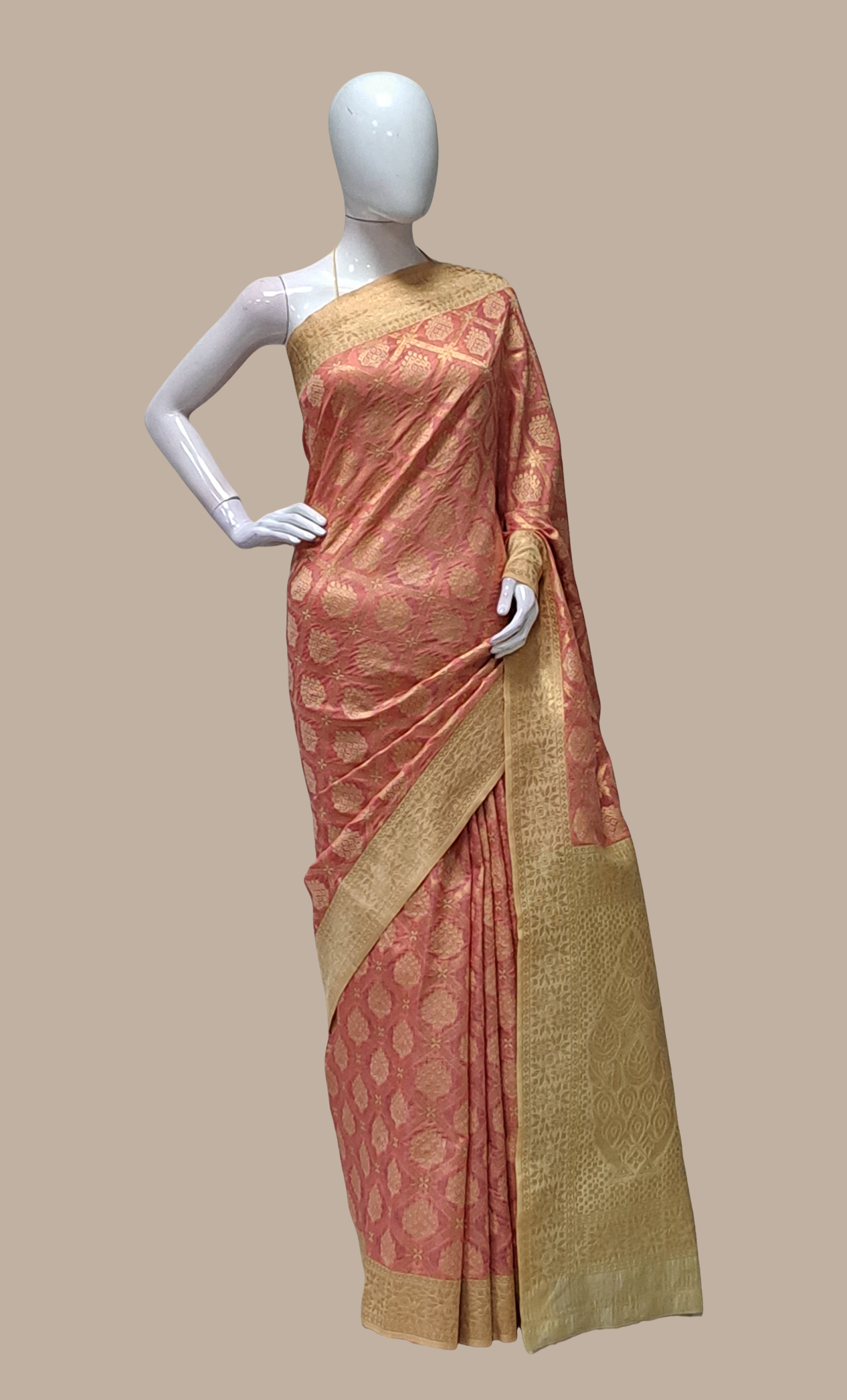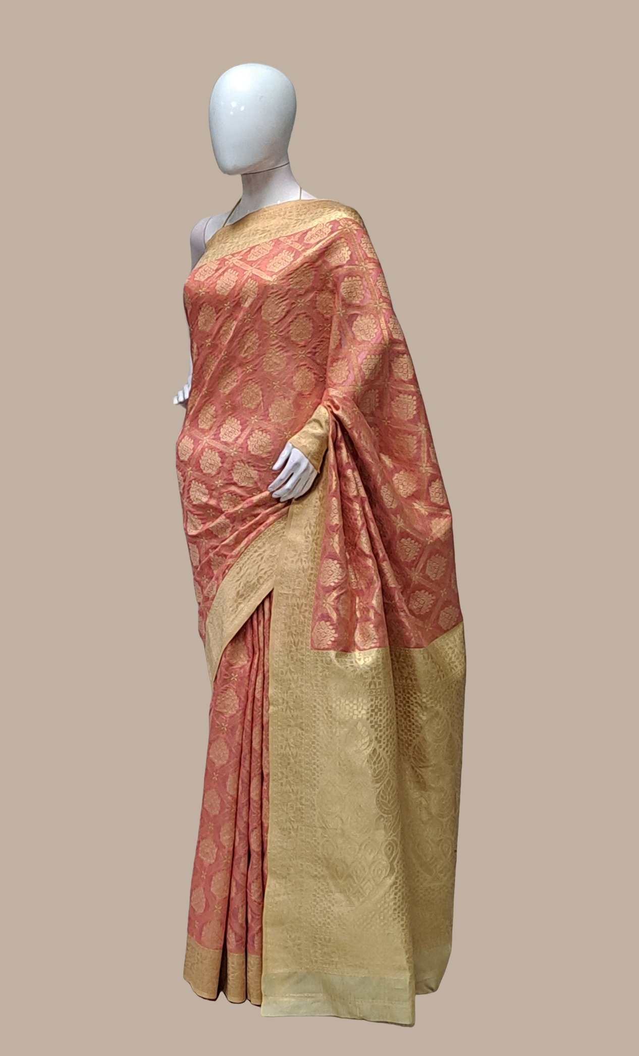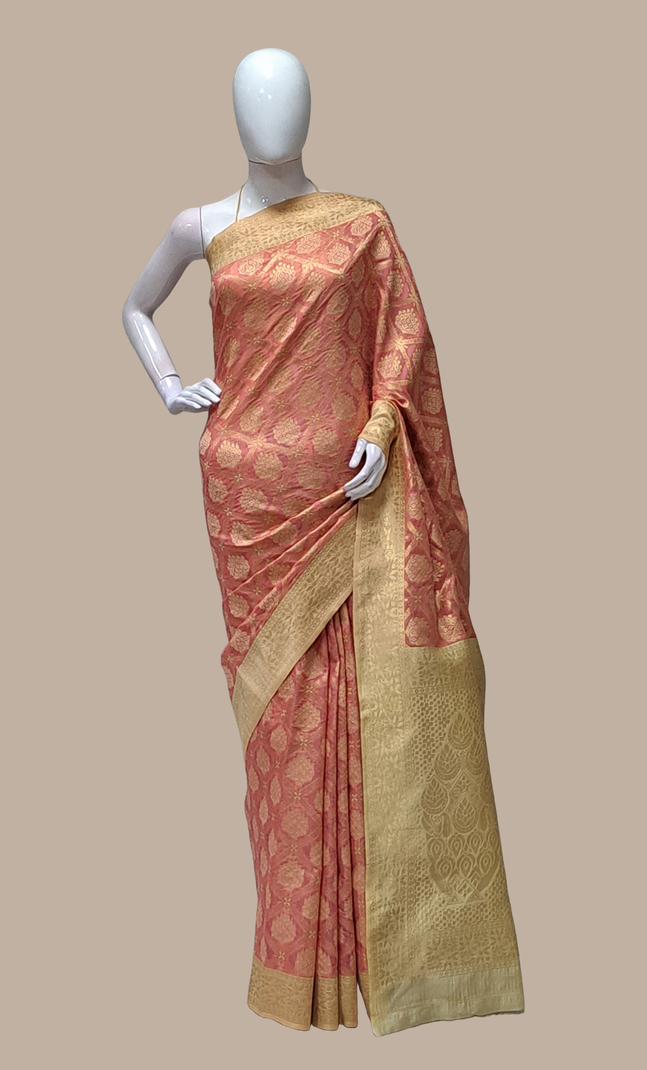 Salmon Pink Art Silk Sari