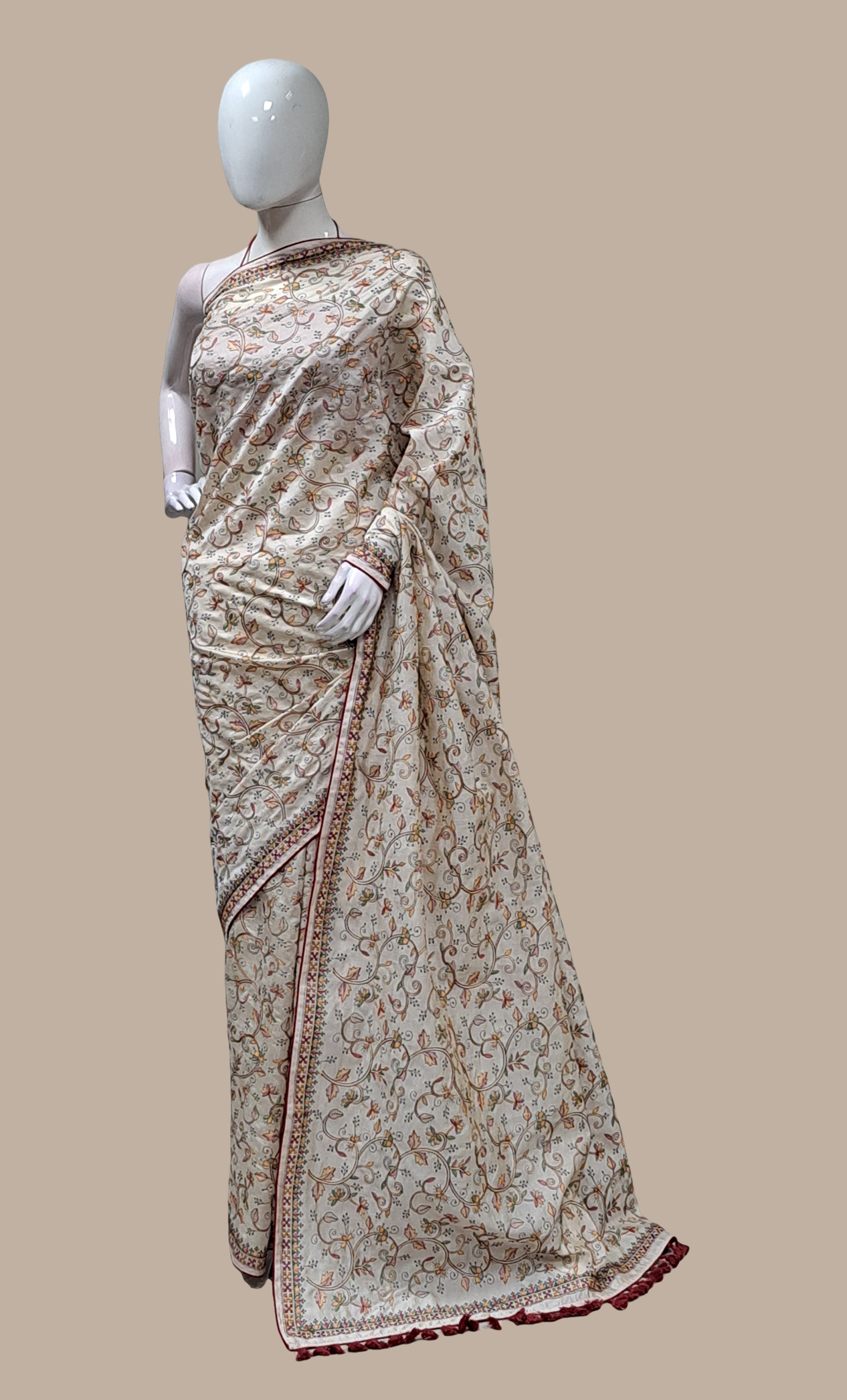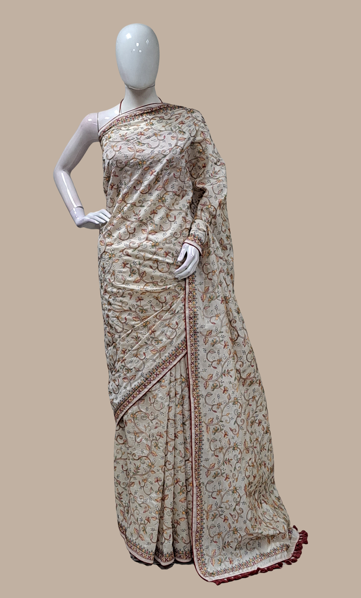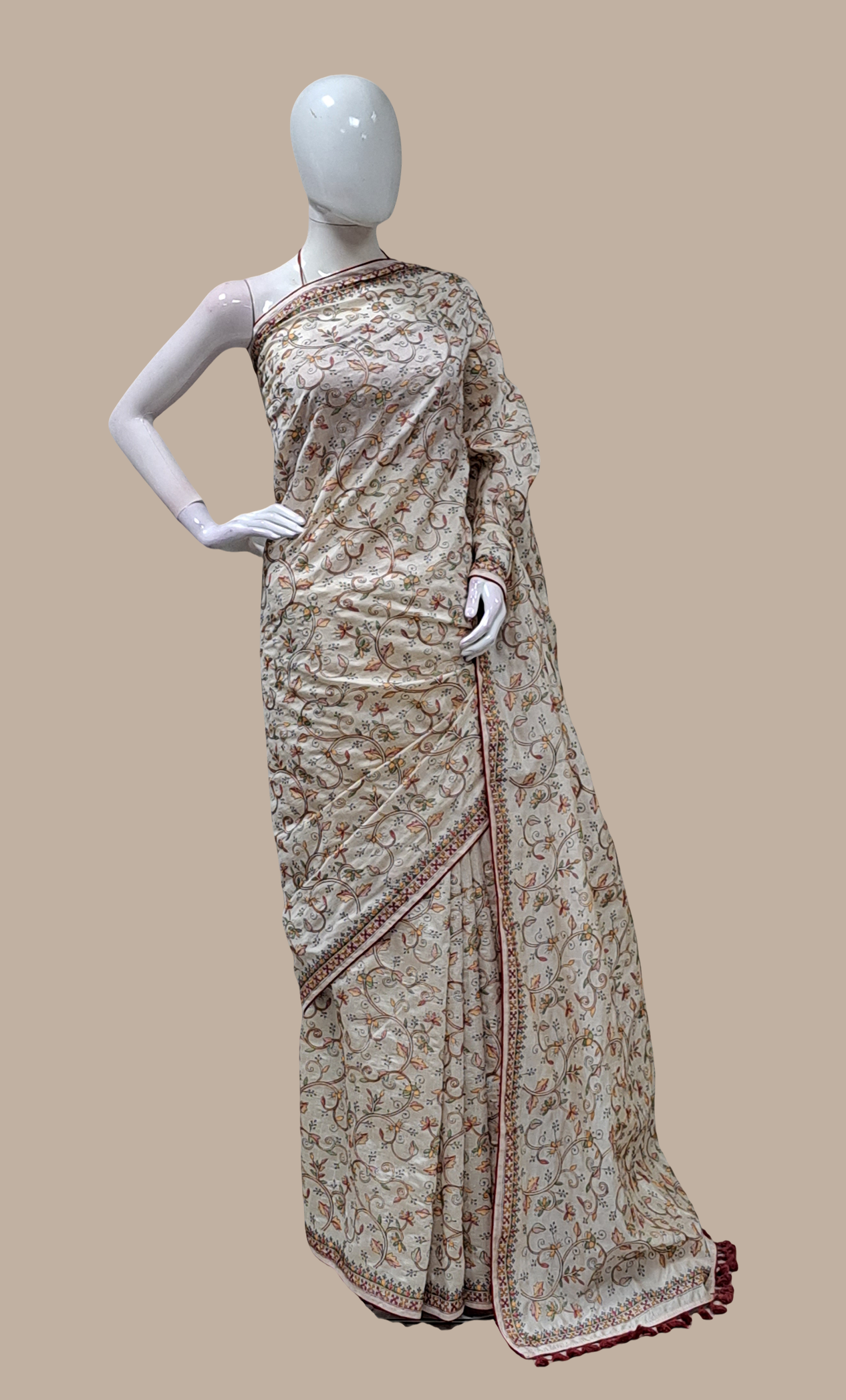 Biscuit Embroidered Art Sari