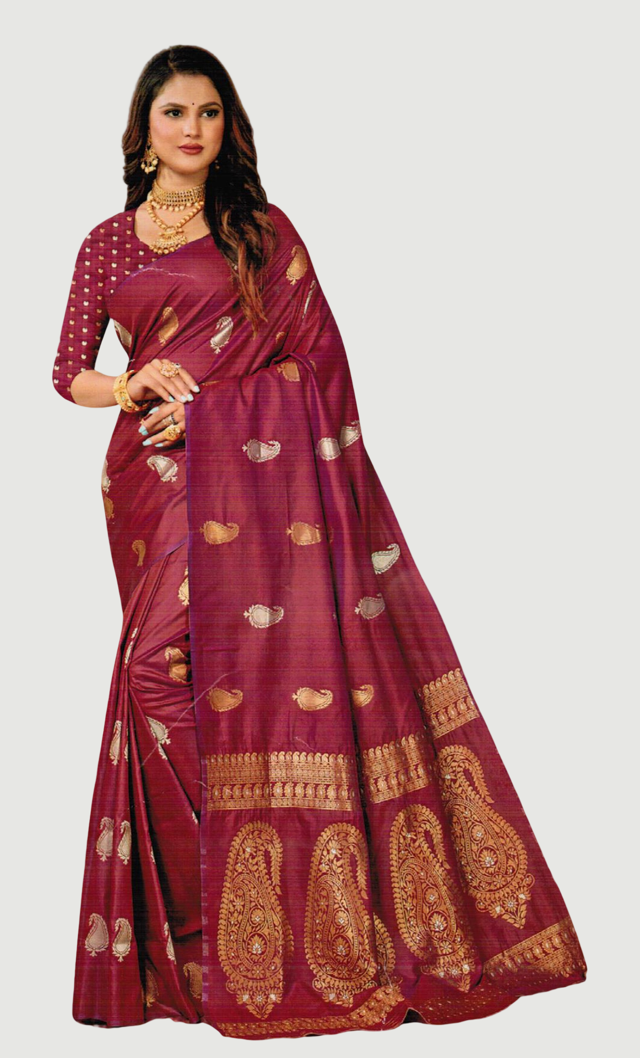 Deep Magenta Art Silk Sari