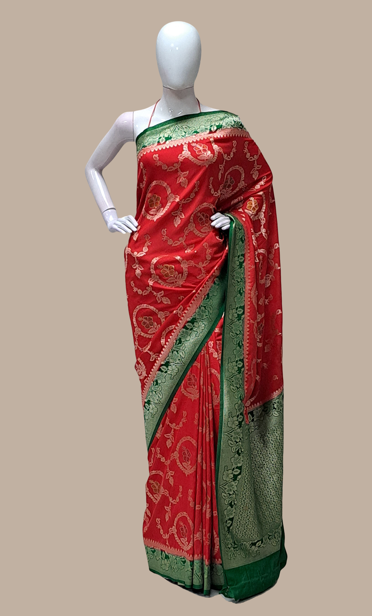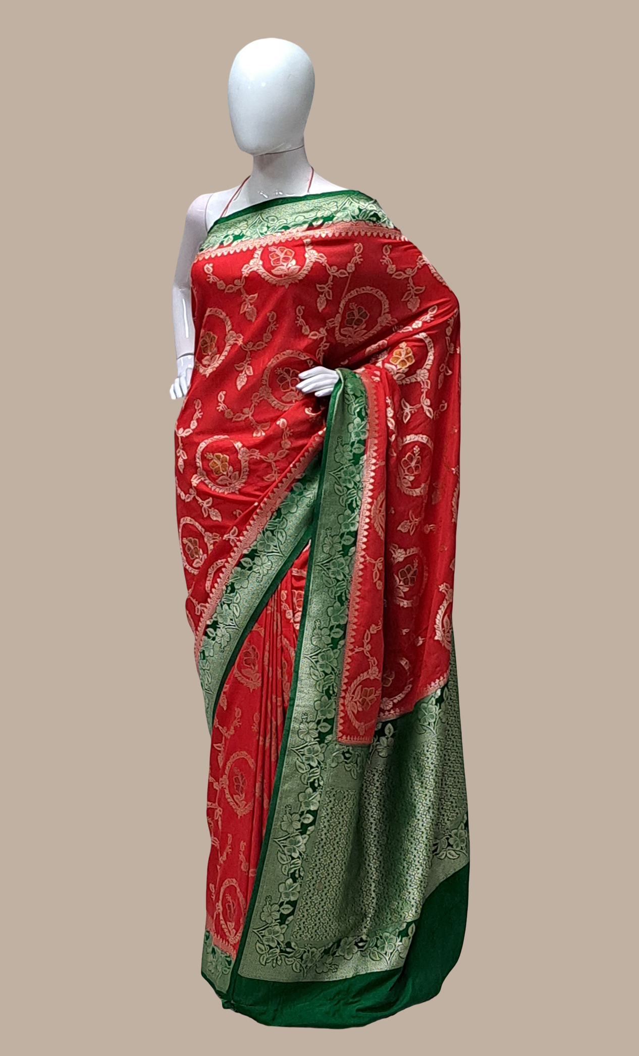 Deep Red Woven Art Silk Sari