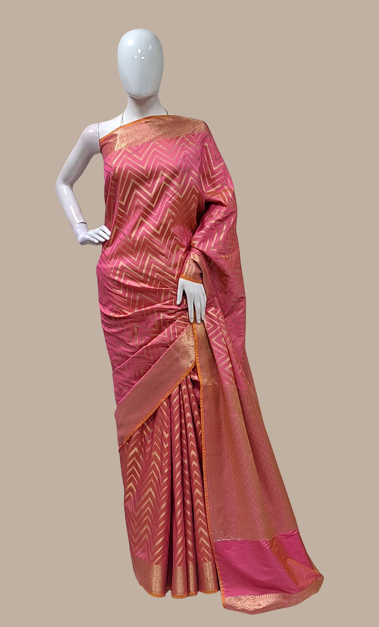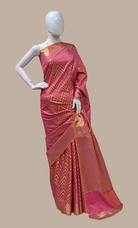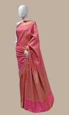 Deep Salmon Pink Art Silk Sari