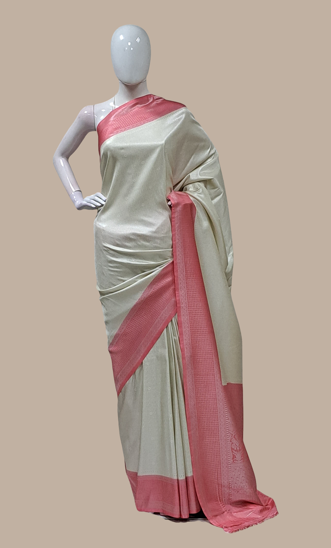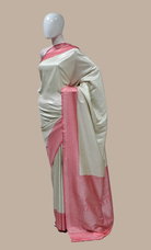 Light Cream Woven Art Silk Sari