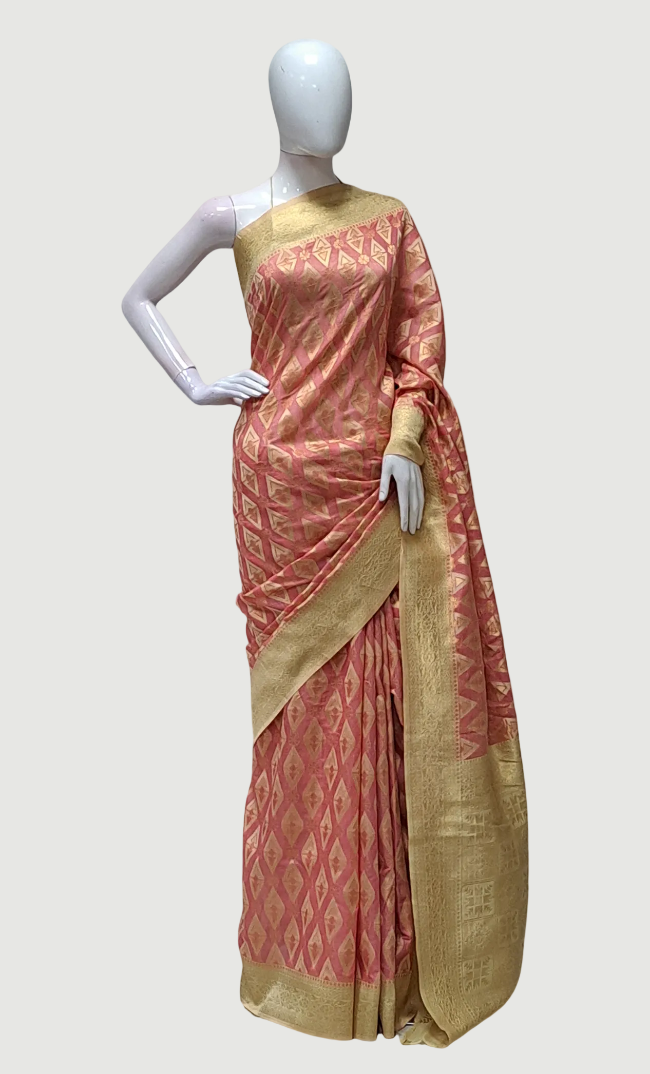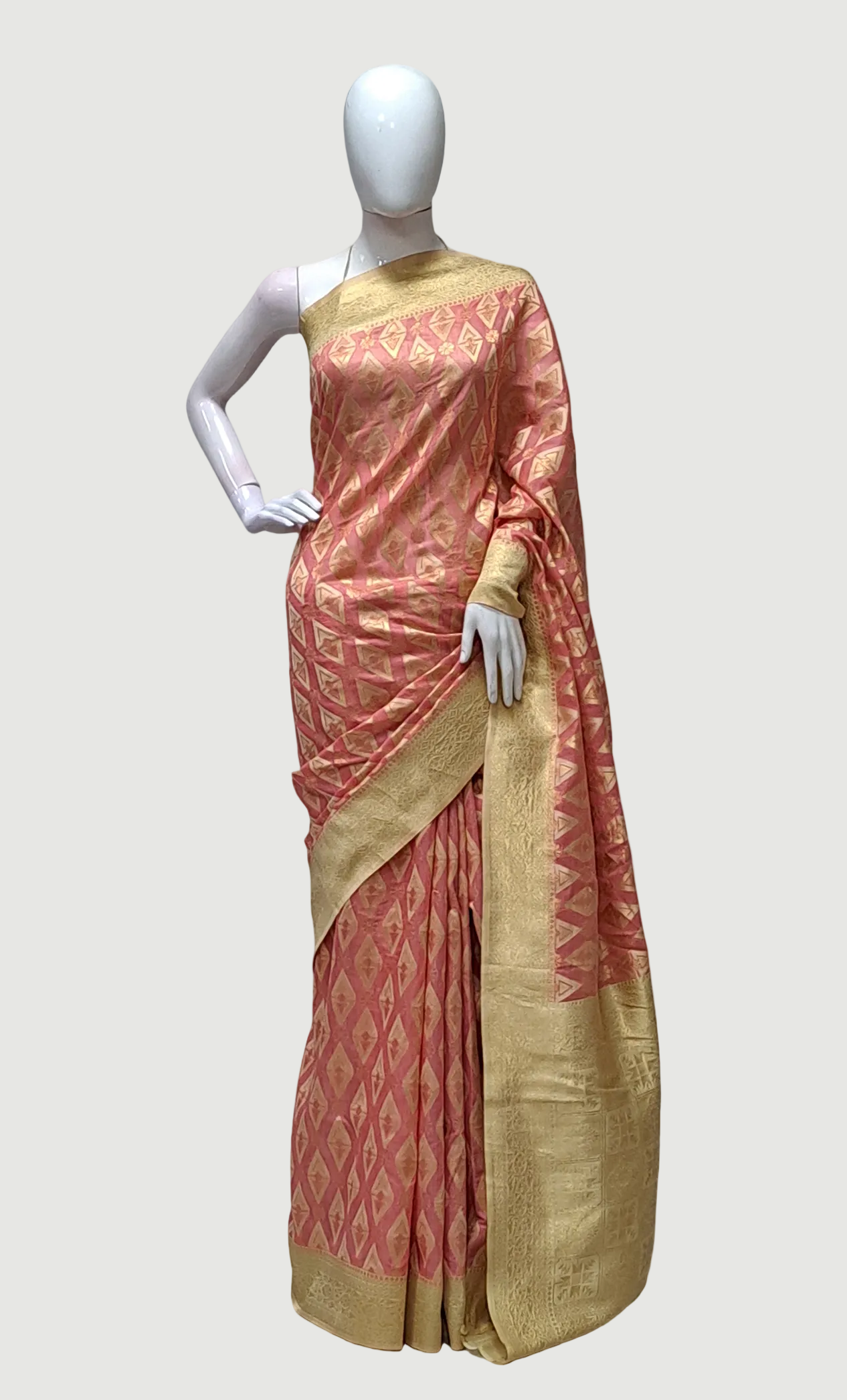 Salmon Pink Art Silk Sari