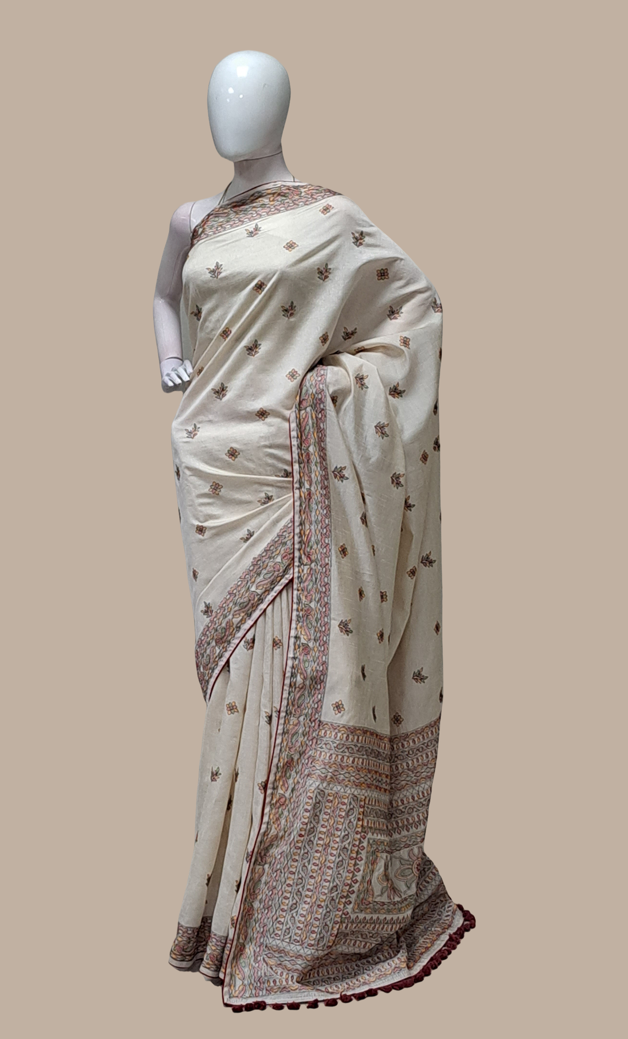 Soft Biscuit Embroidered Art Sari