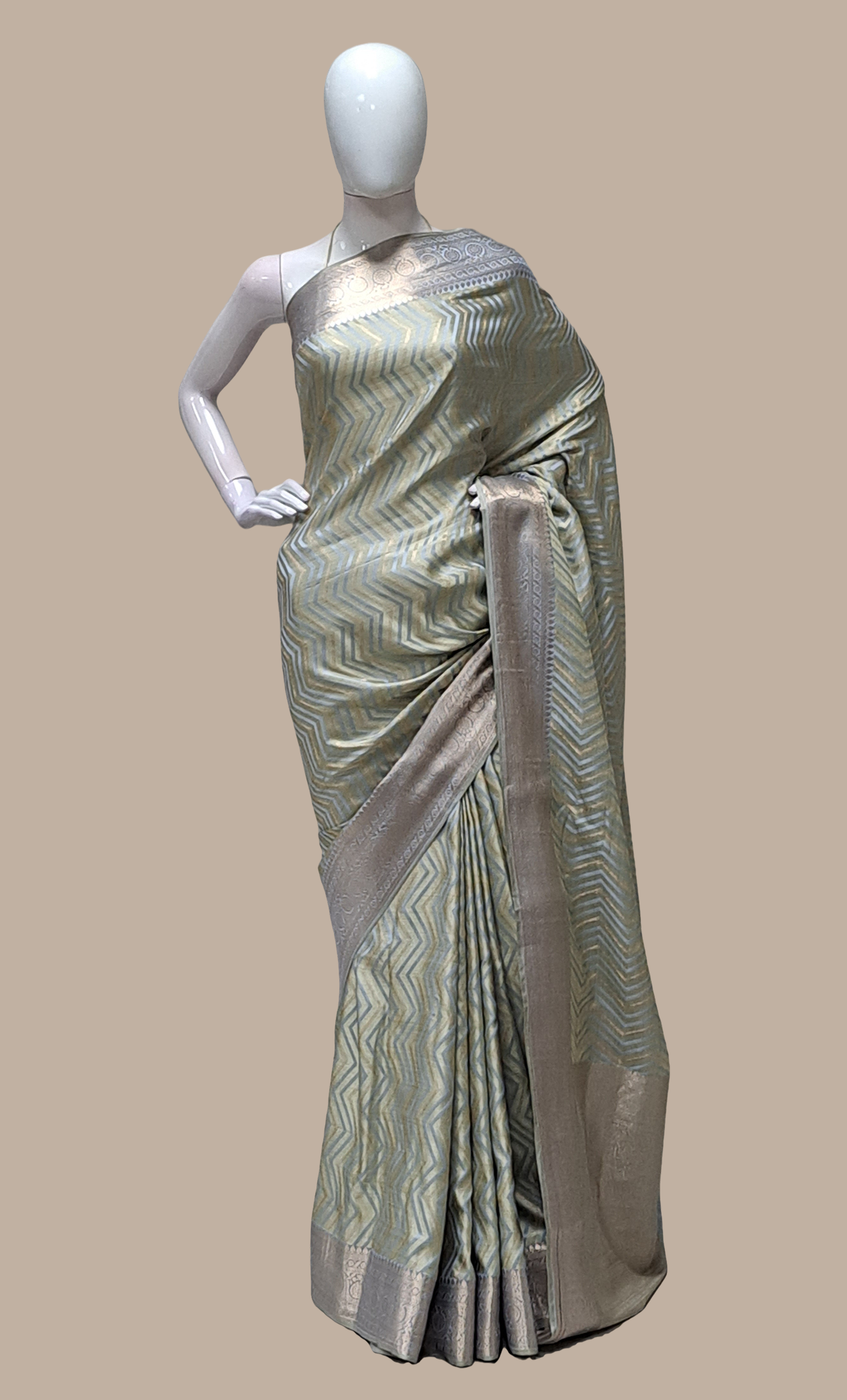 Soft Grey Woven Art Silk Sari