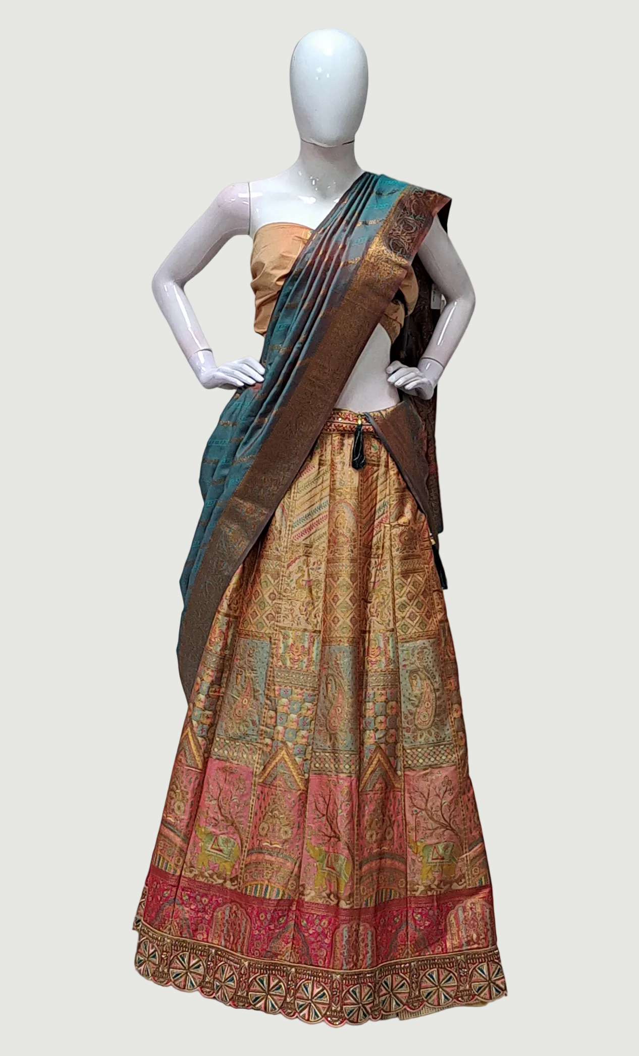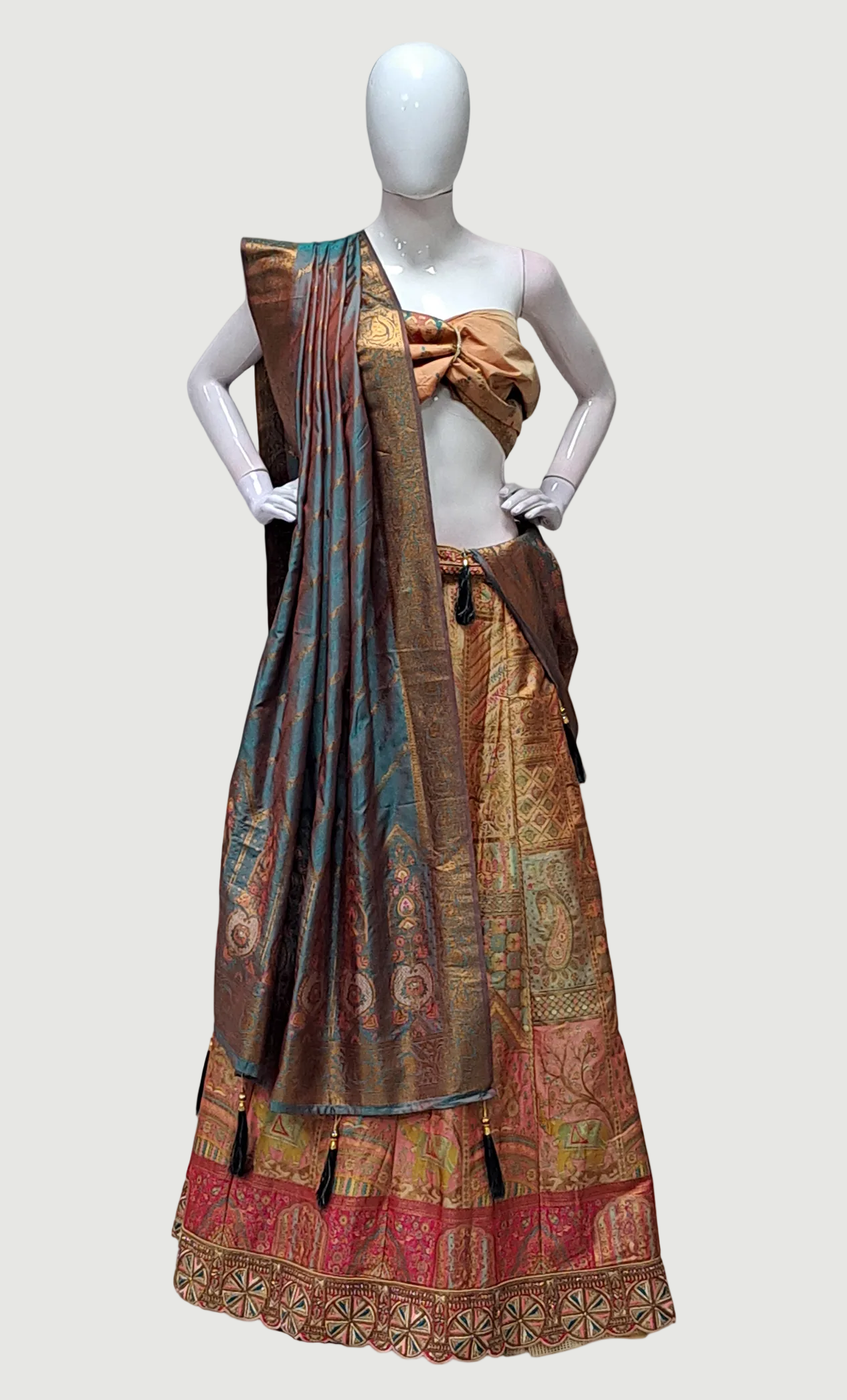 Deep Almond Embroidered Lengha Set
