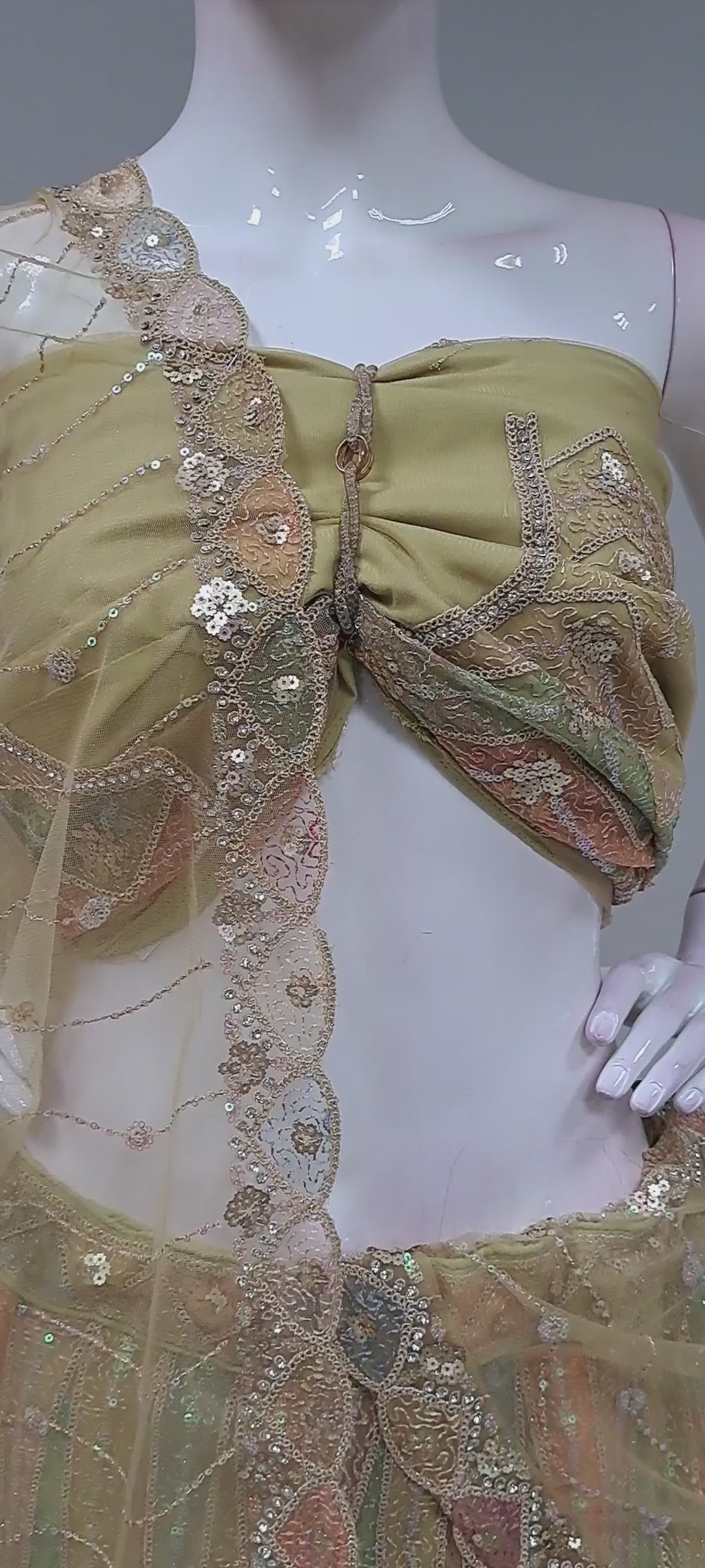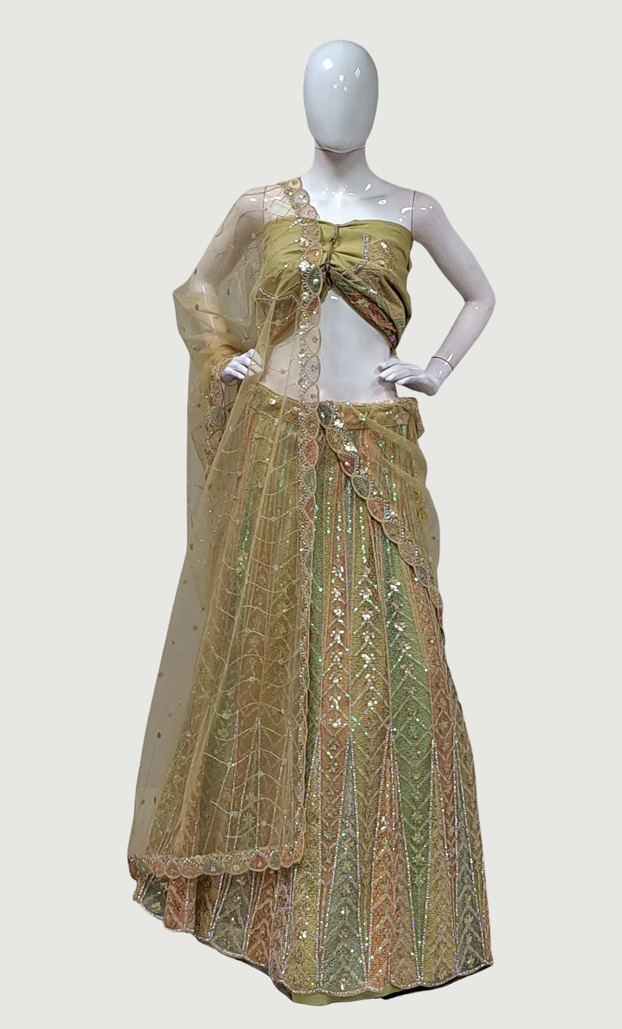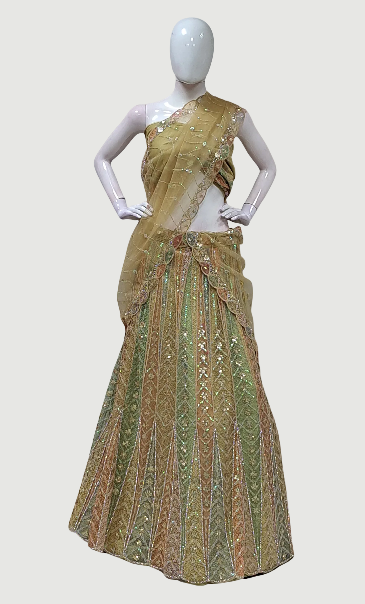 Light Olive Embroidered Lengha