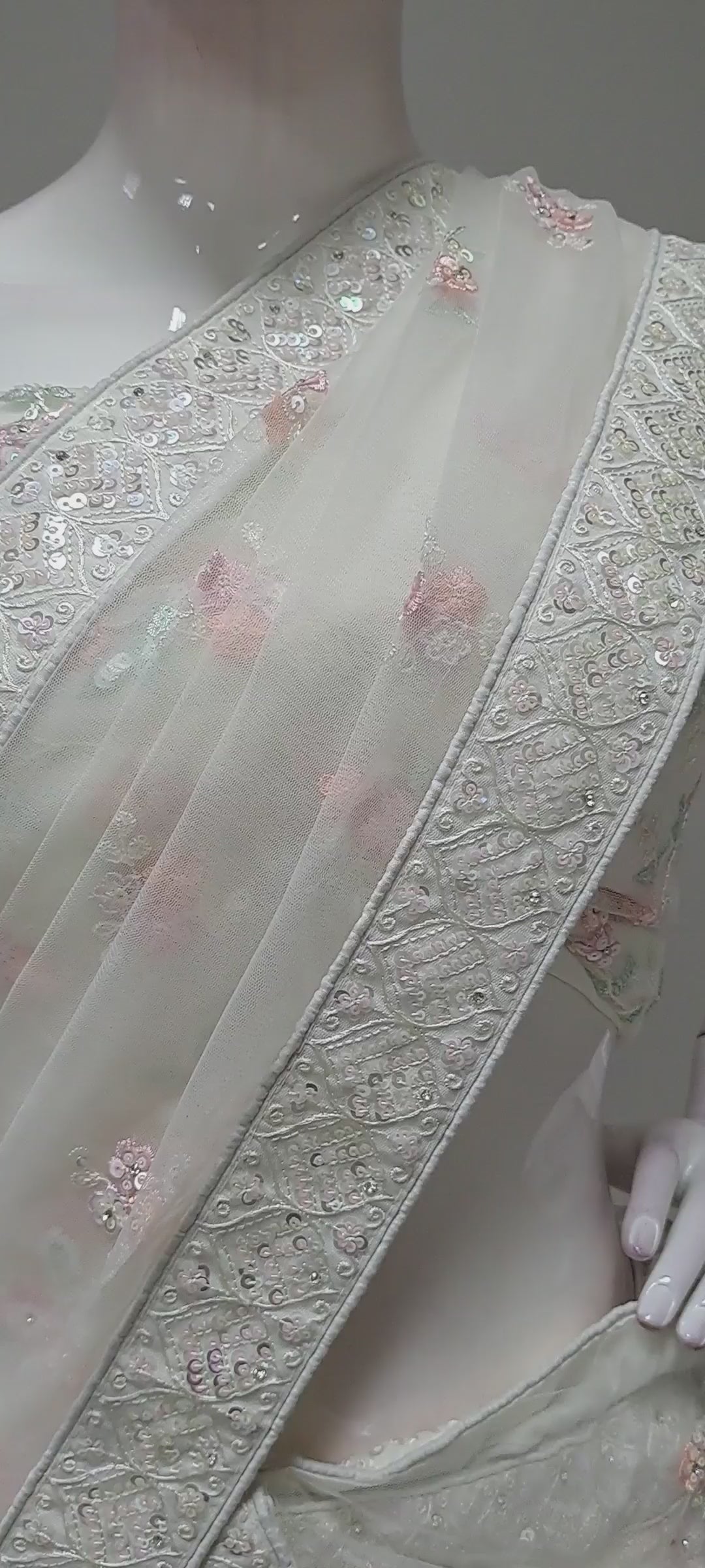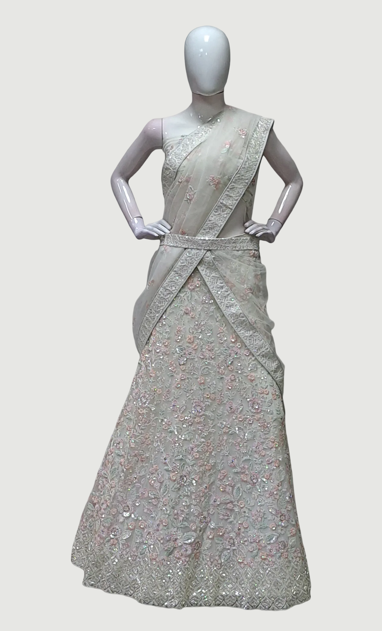 Soft Cream Embroidered Lengha
