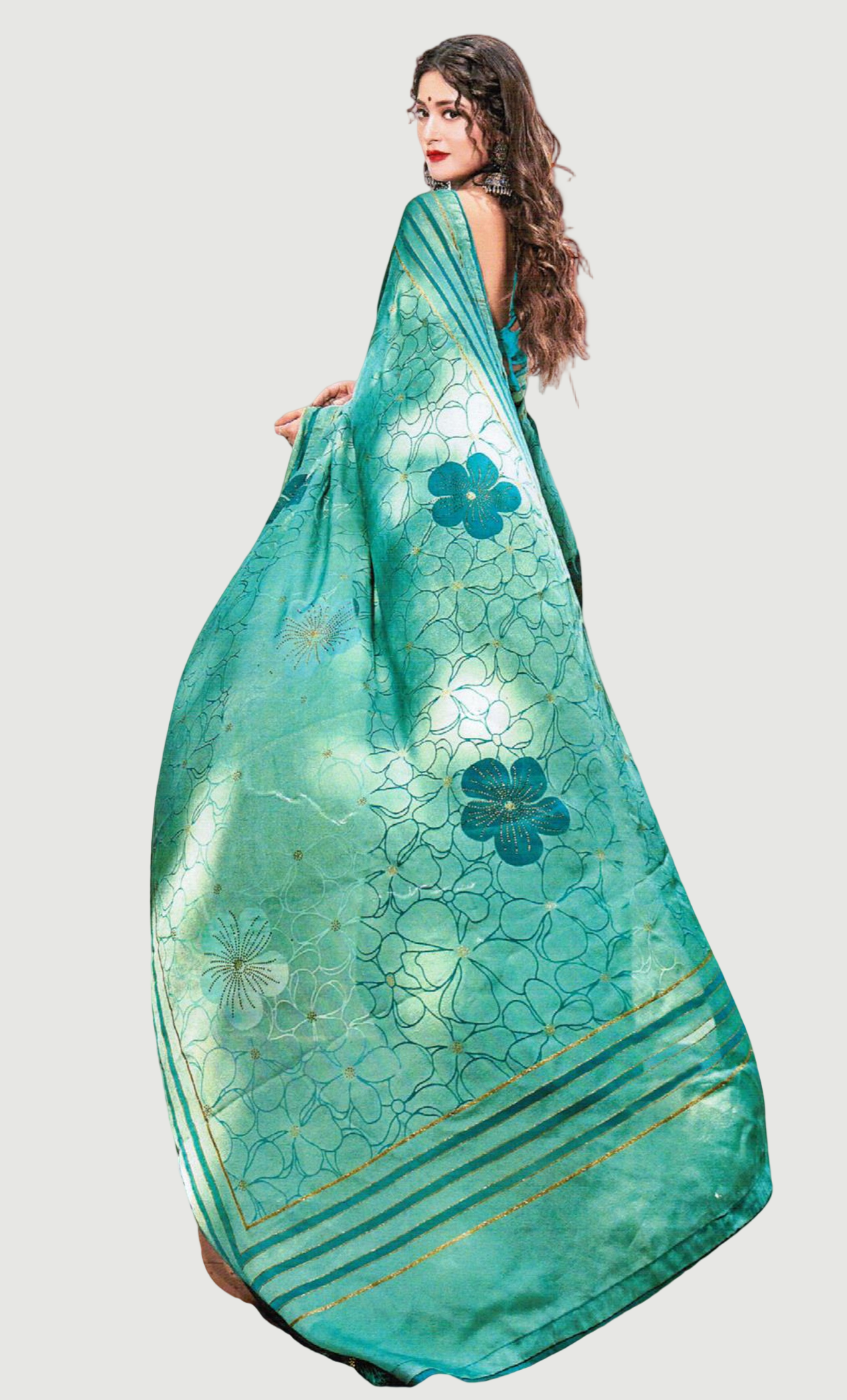 Aqua Green Printed Sari