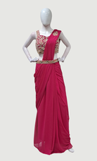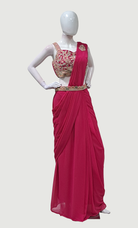 Cerise Ready Sari With Ready Made Blouse