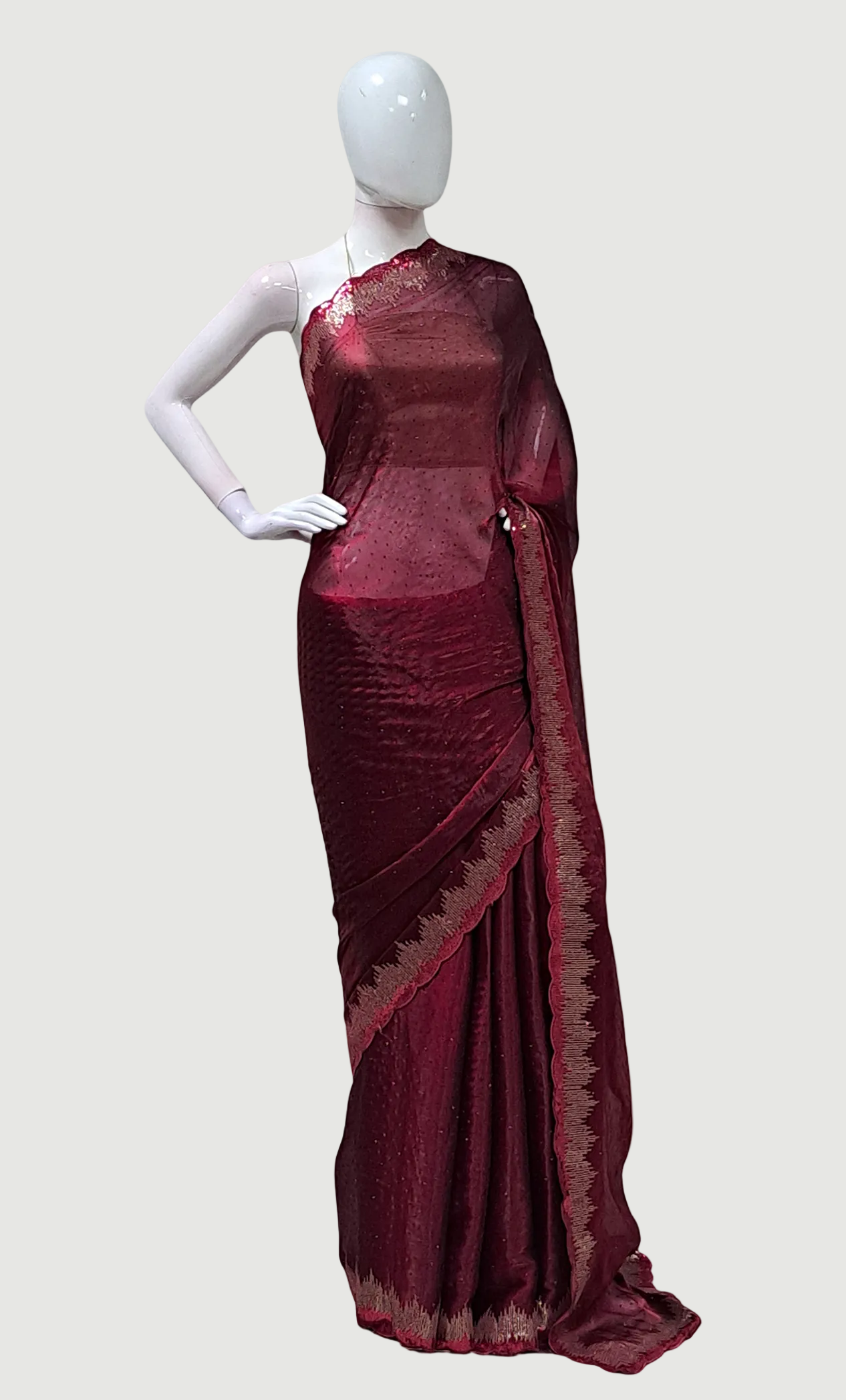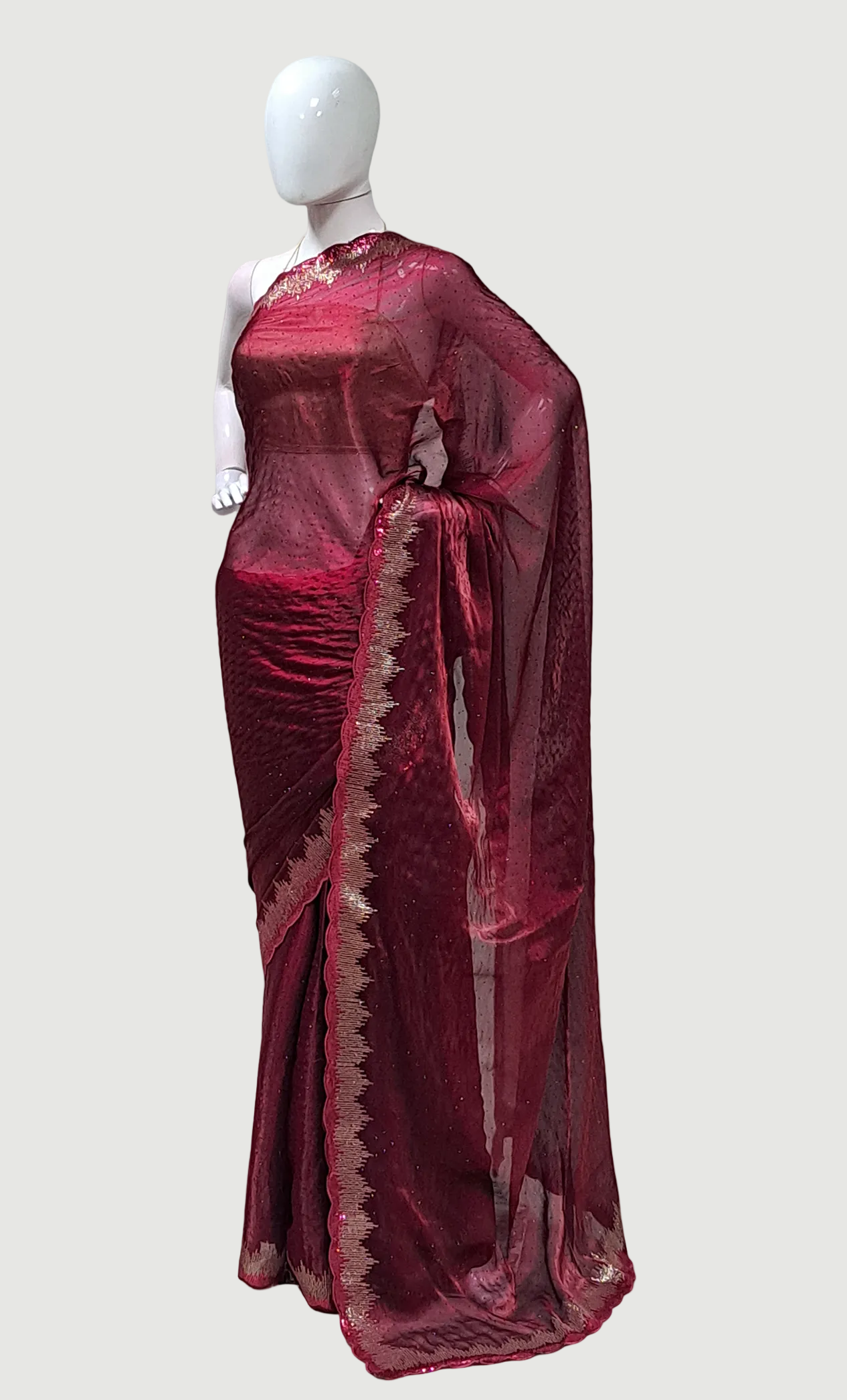 Deep Maroon Embroidered Sari