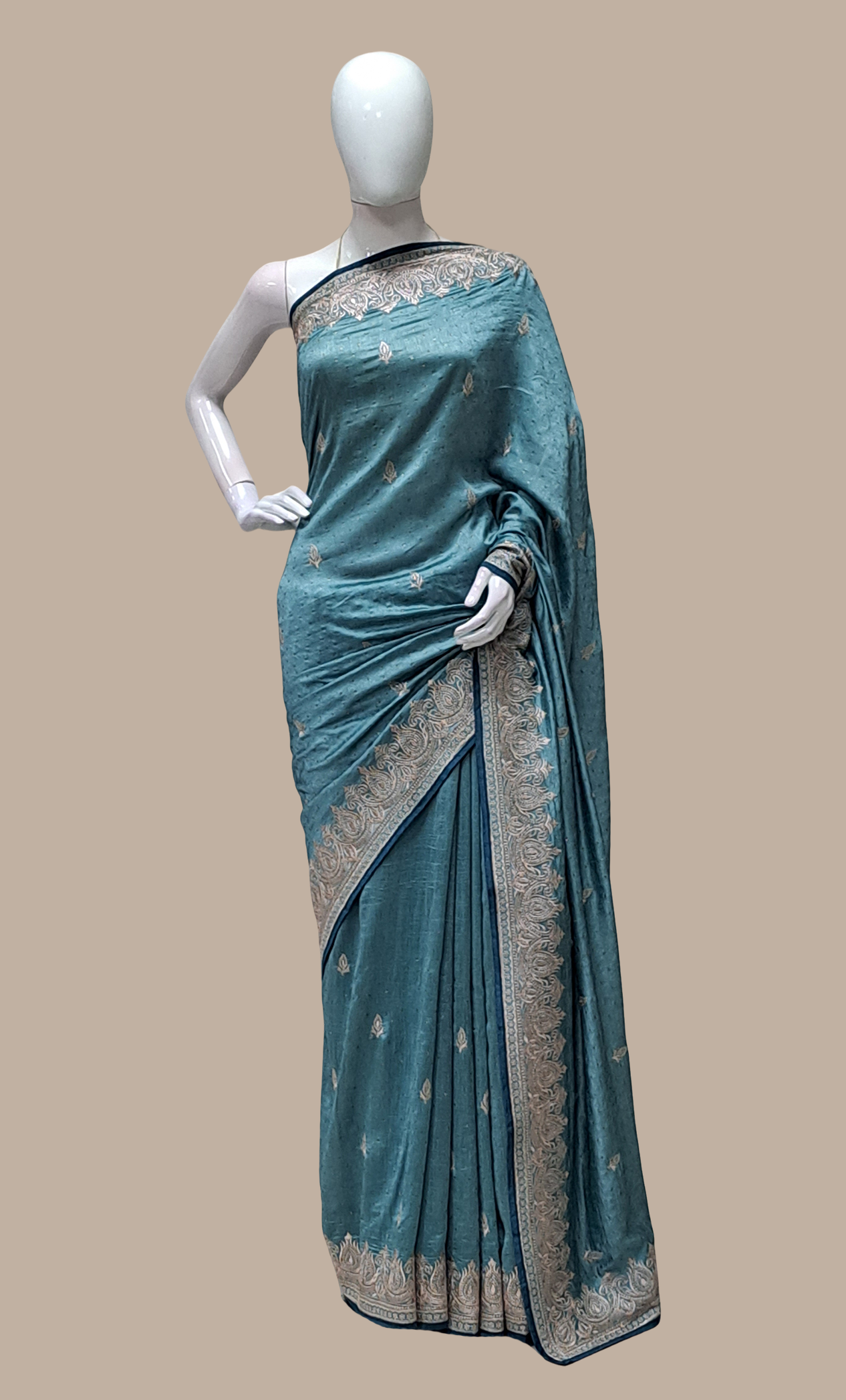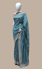 Light Teal Embroidered Sari