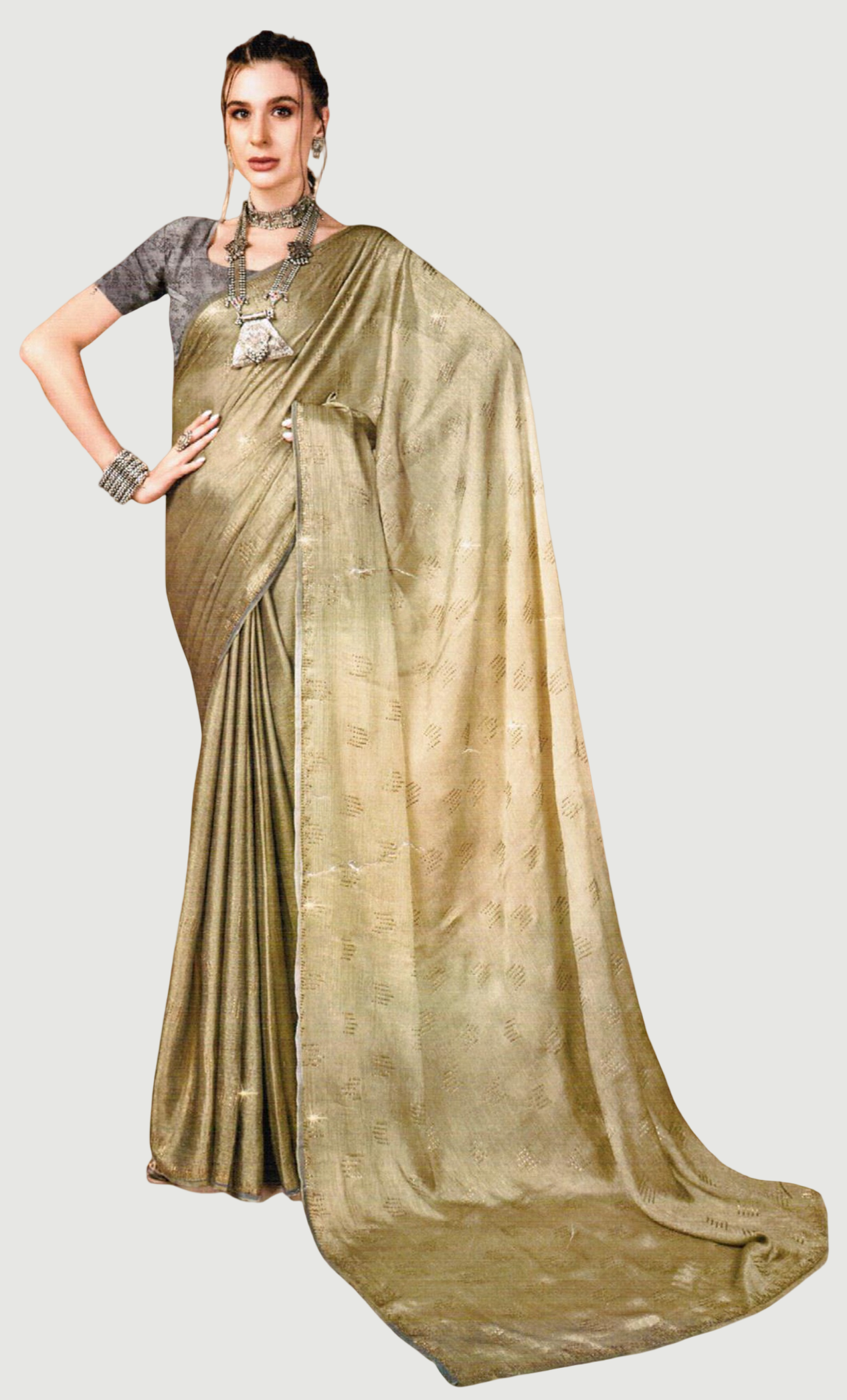 Metallic Olive Green Embroidered Sari