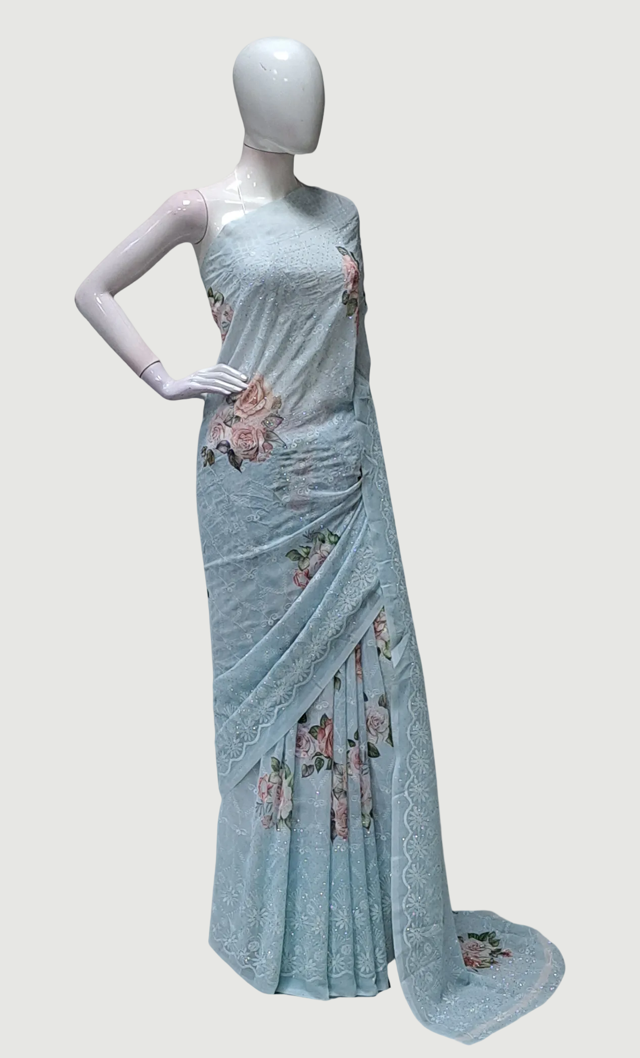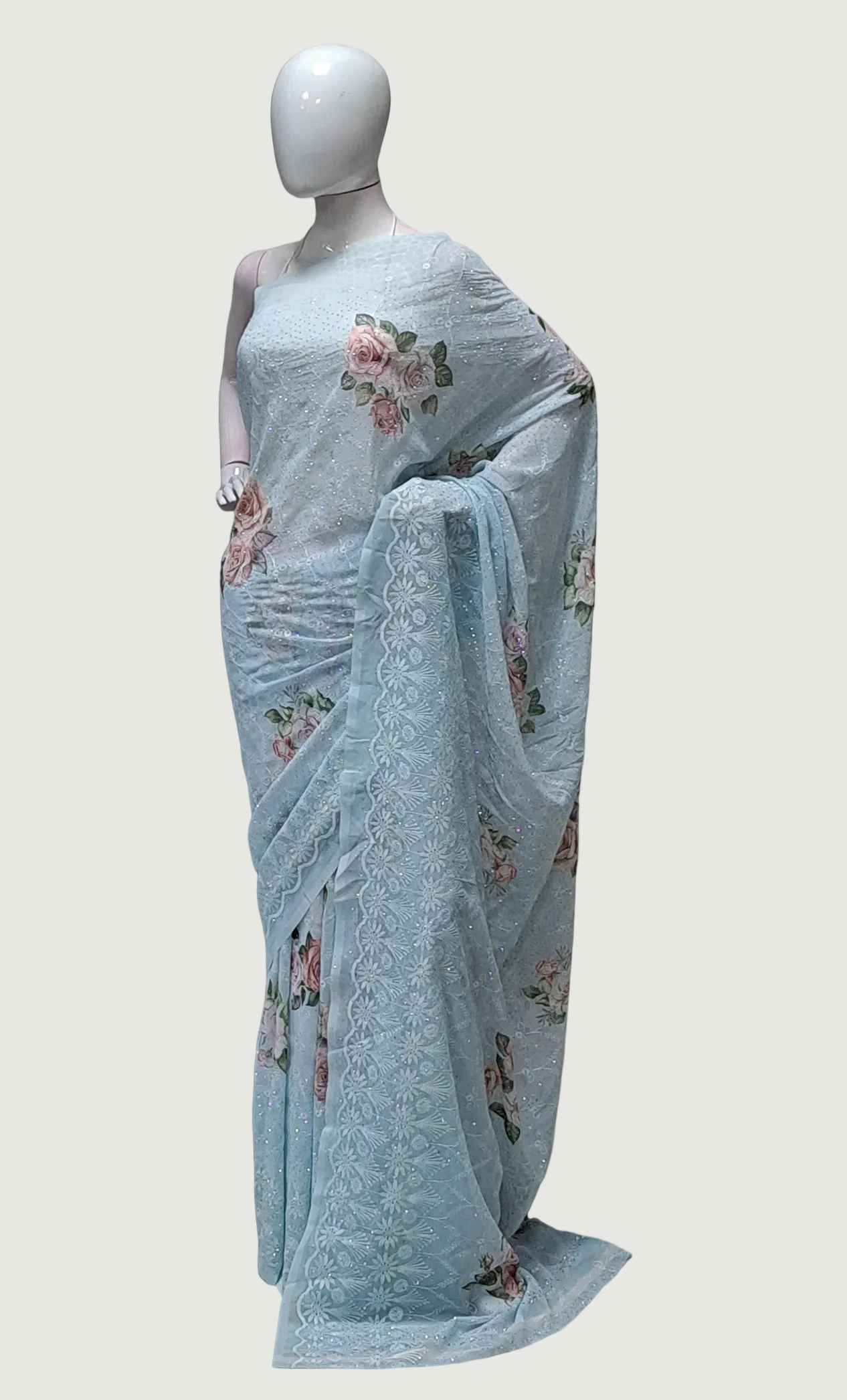 Sea Blue Embroidered Sari