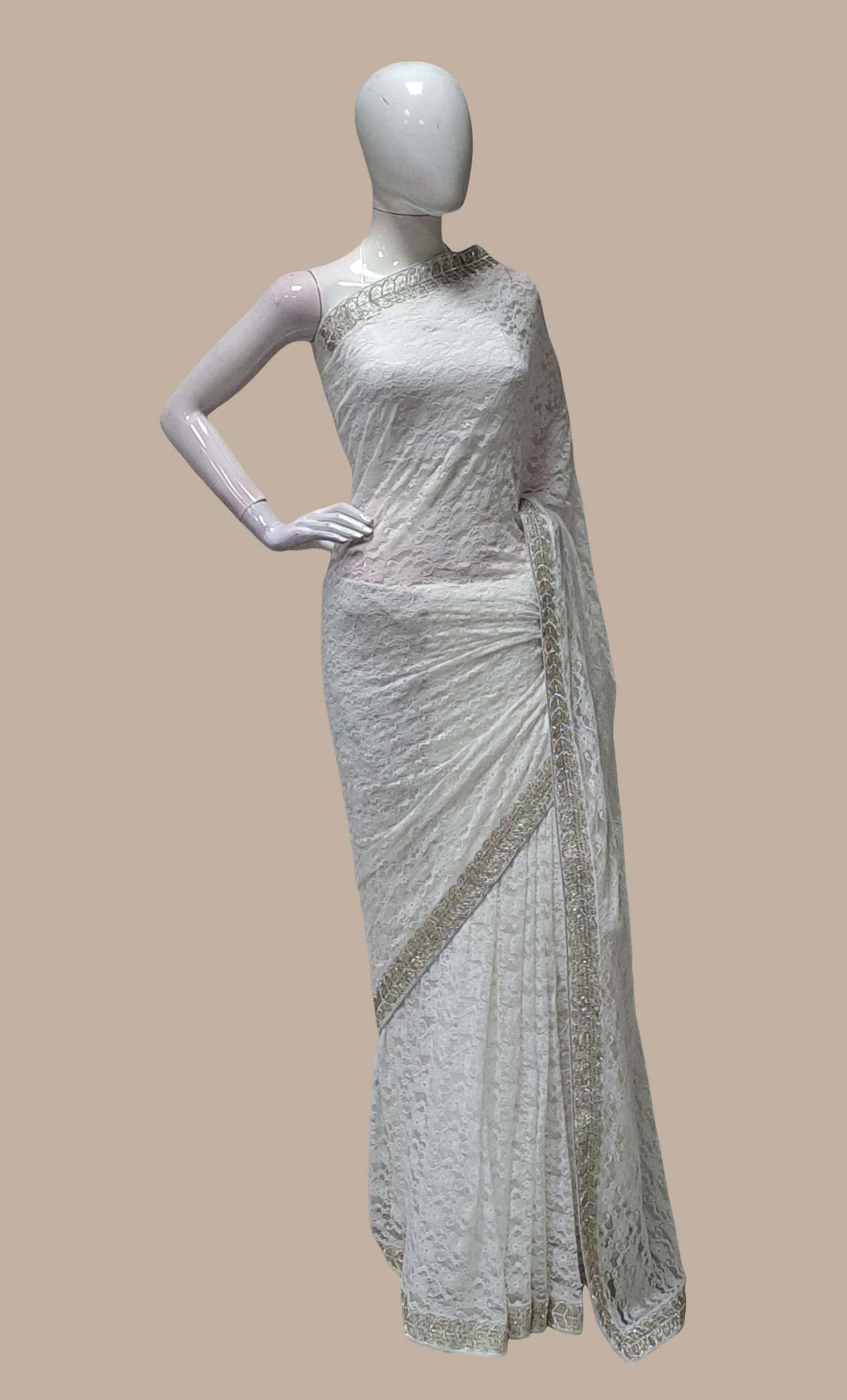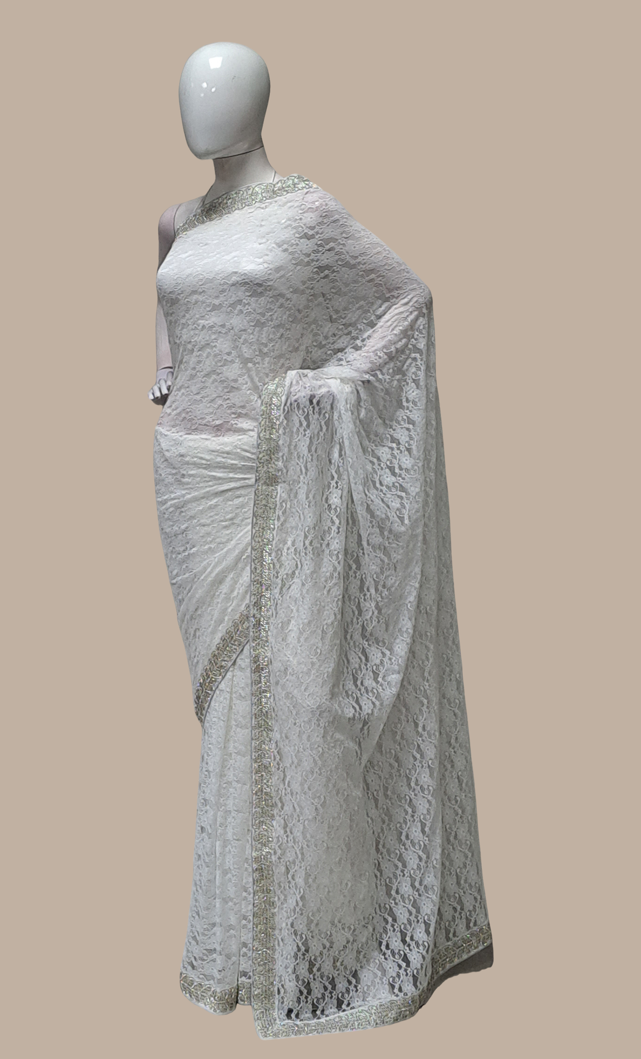 White Embroidered Sari