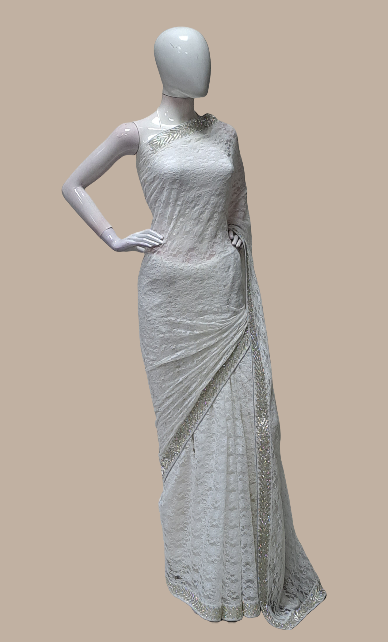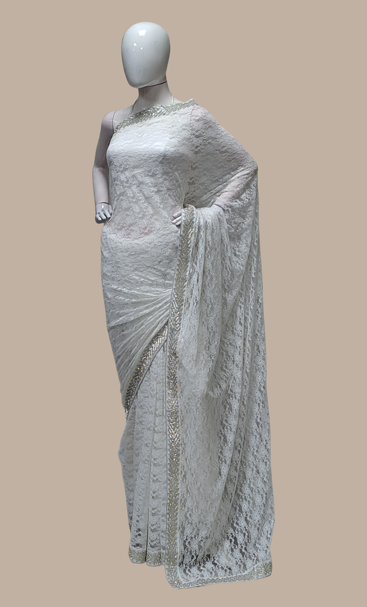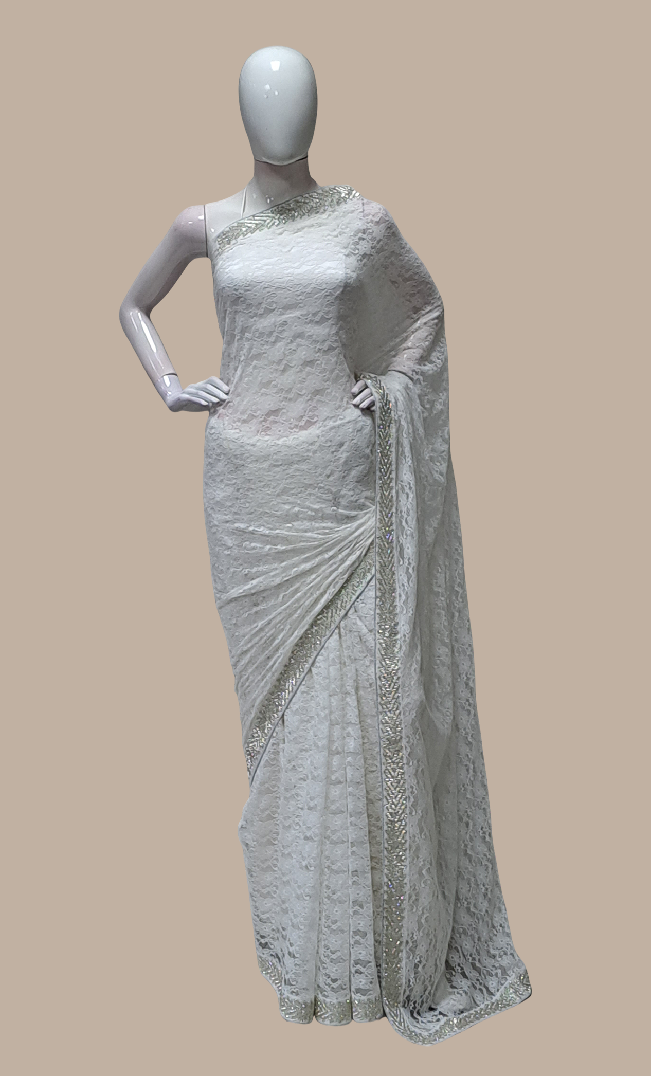 White Embroidered Sari