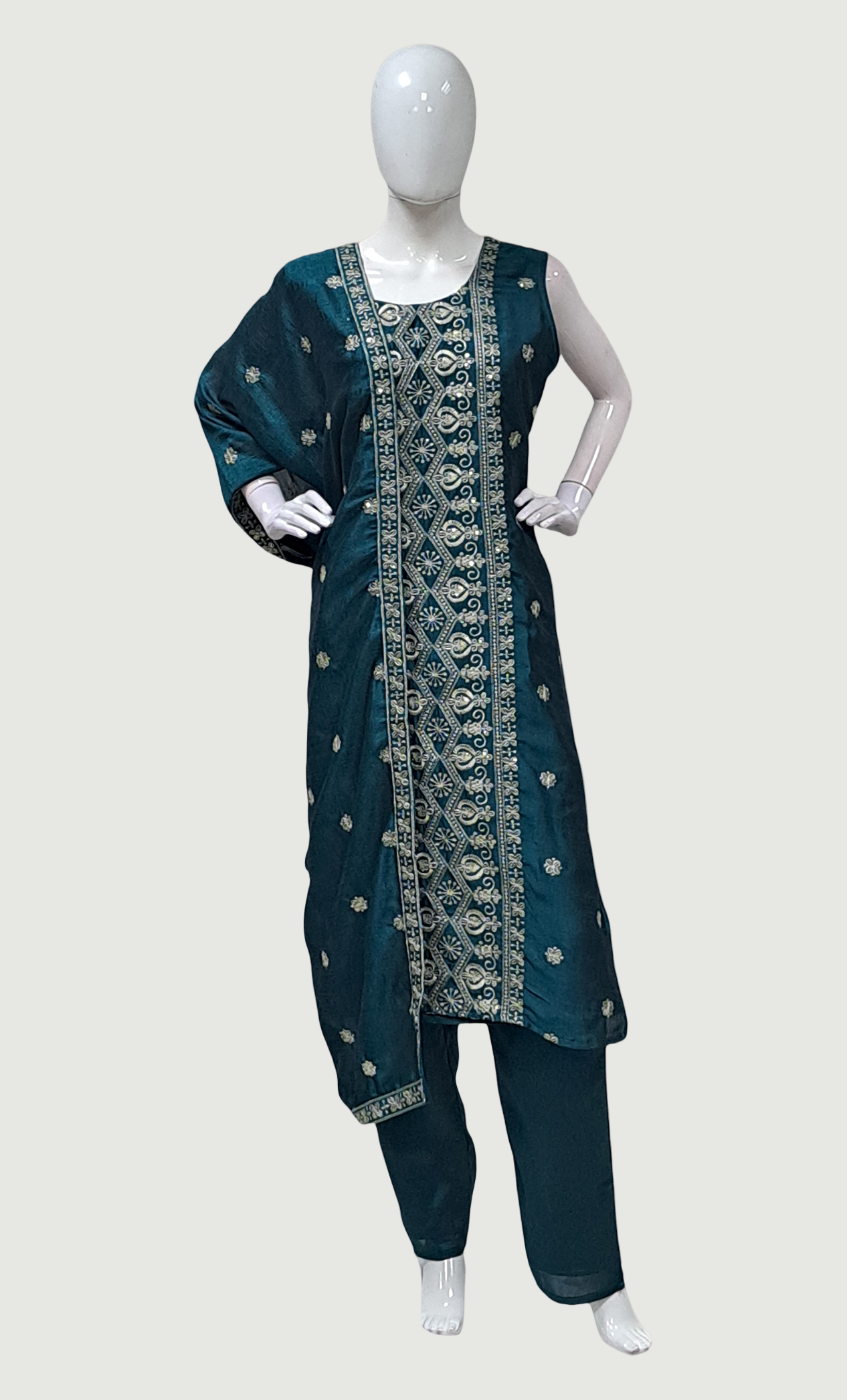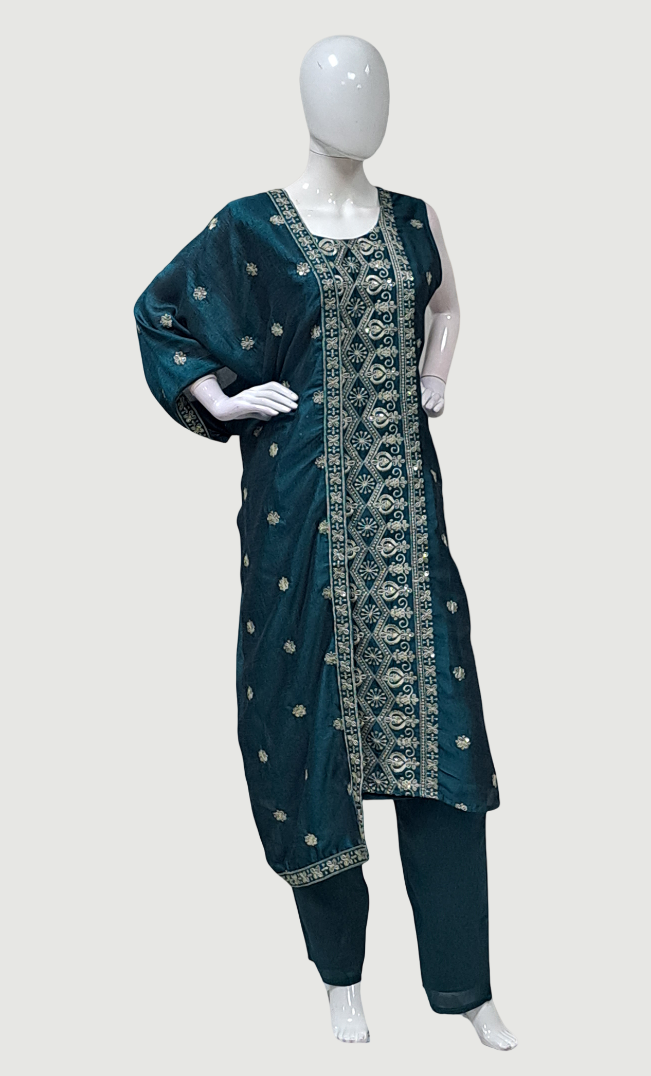 Deep Green Embroidered Punjabi