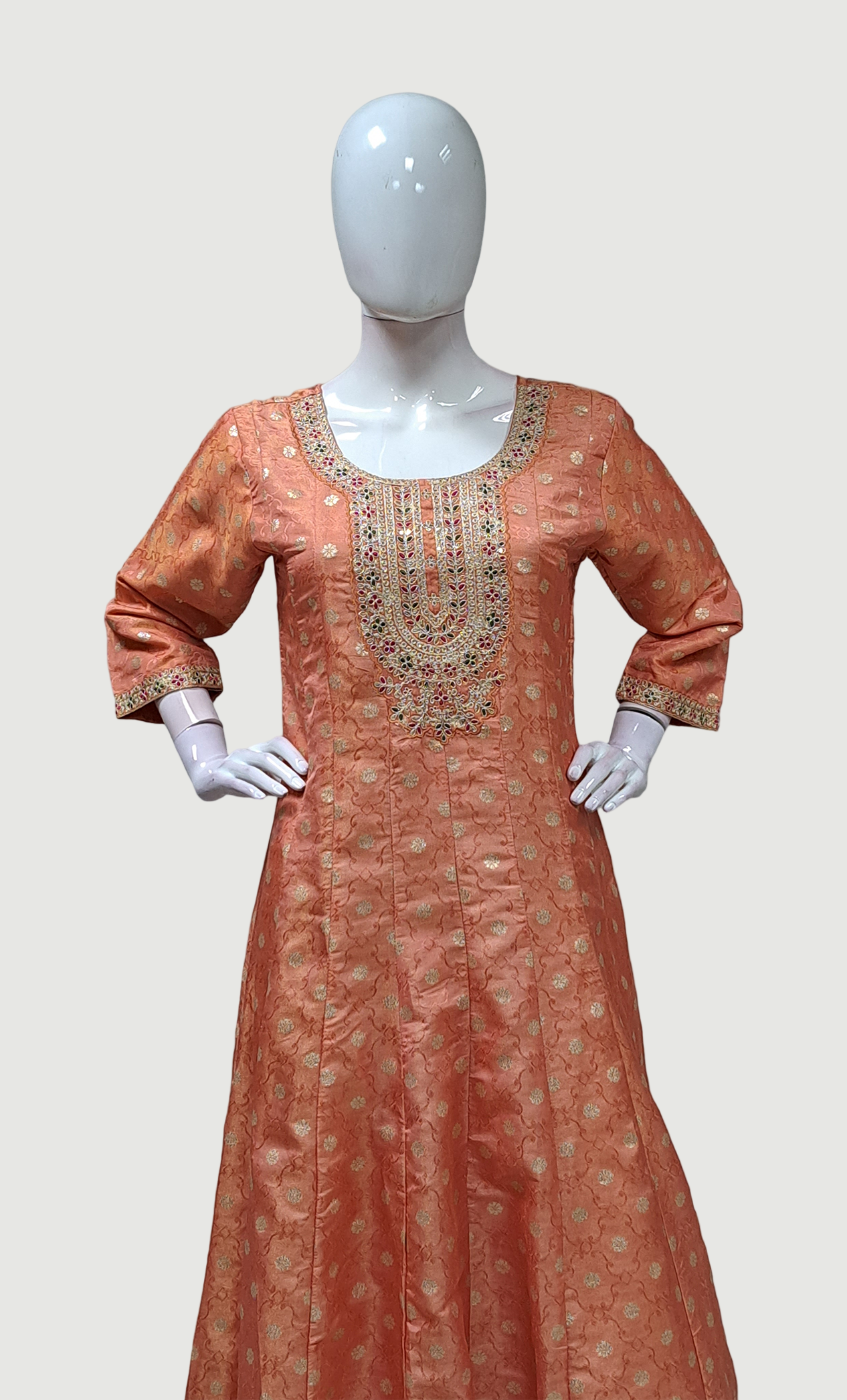 • Front multi-colour cotton embroidered designs with gold woven finish