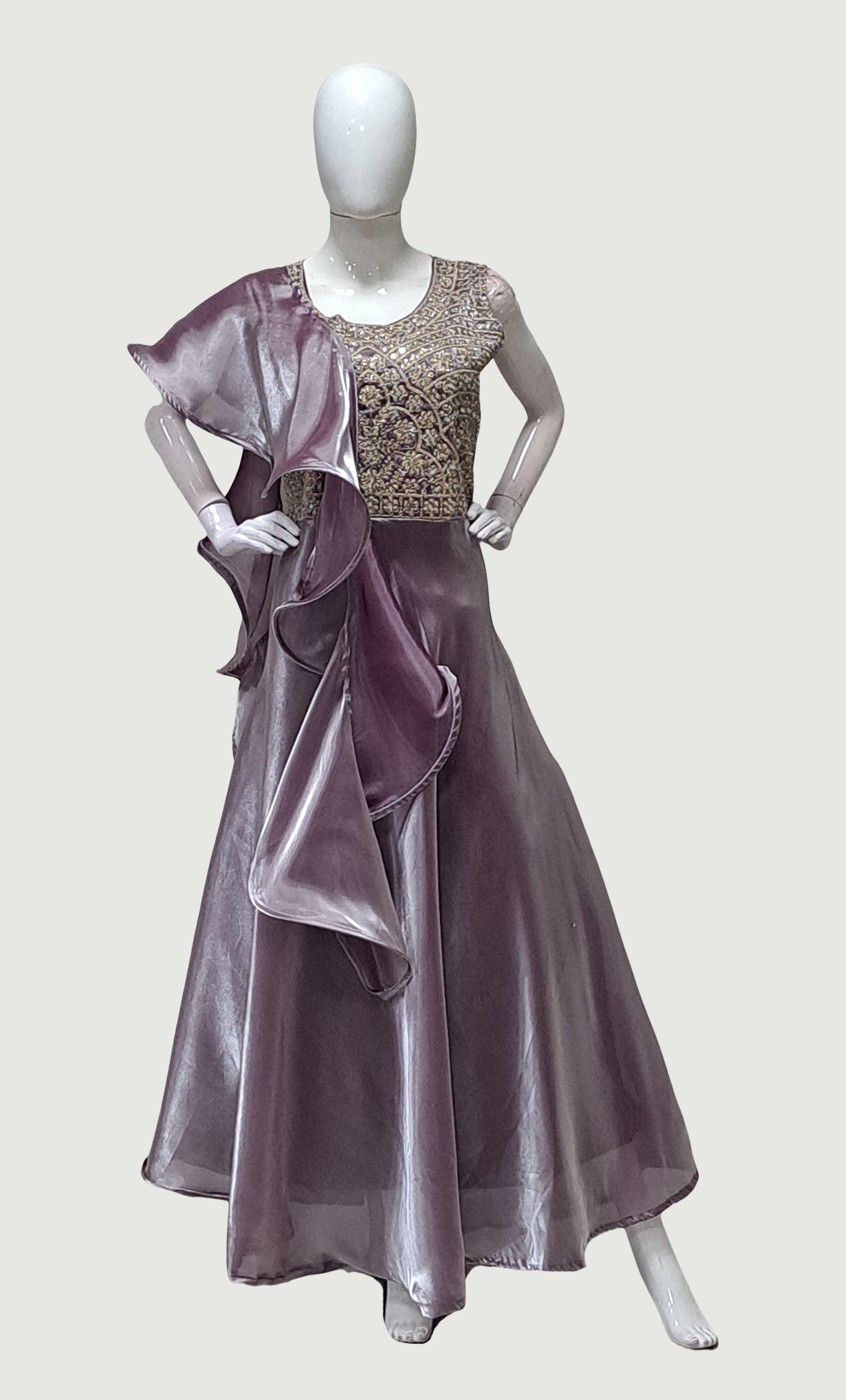 Purple Embroidered Gown & Dupatta