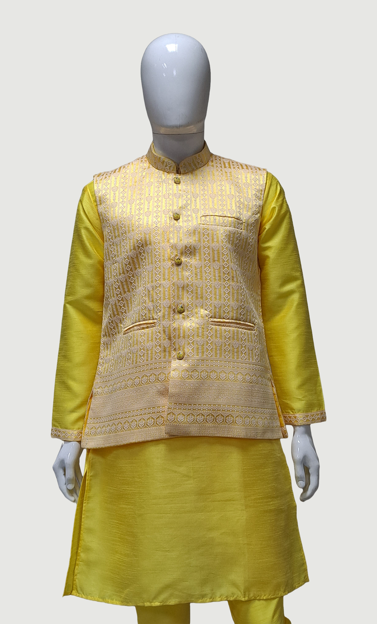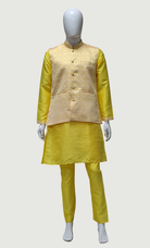 Yellow Embroidered Kurta & Waist Coat