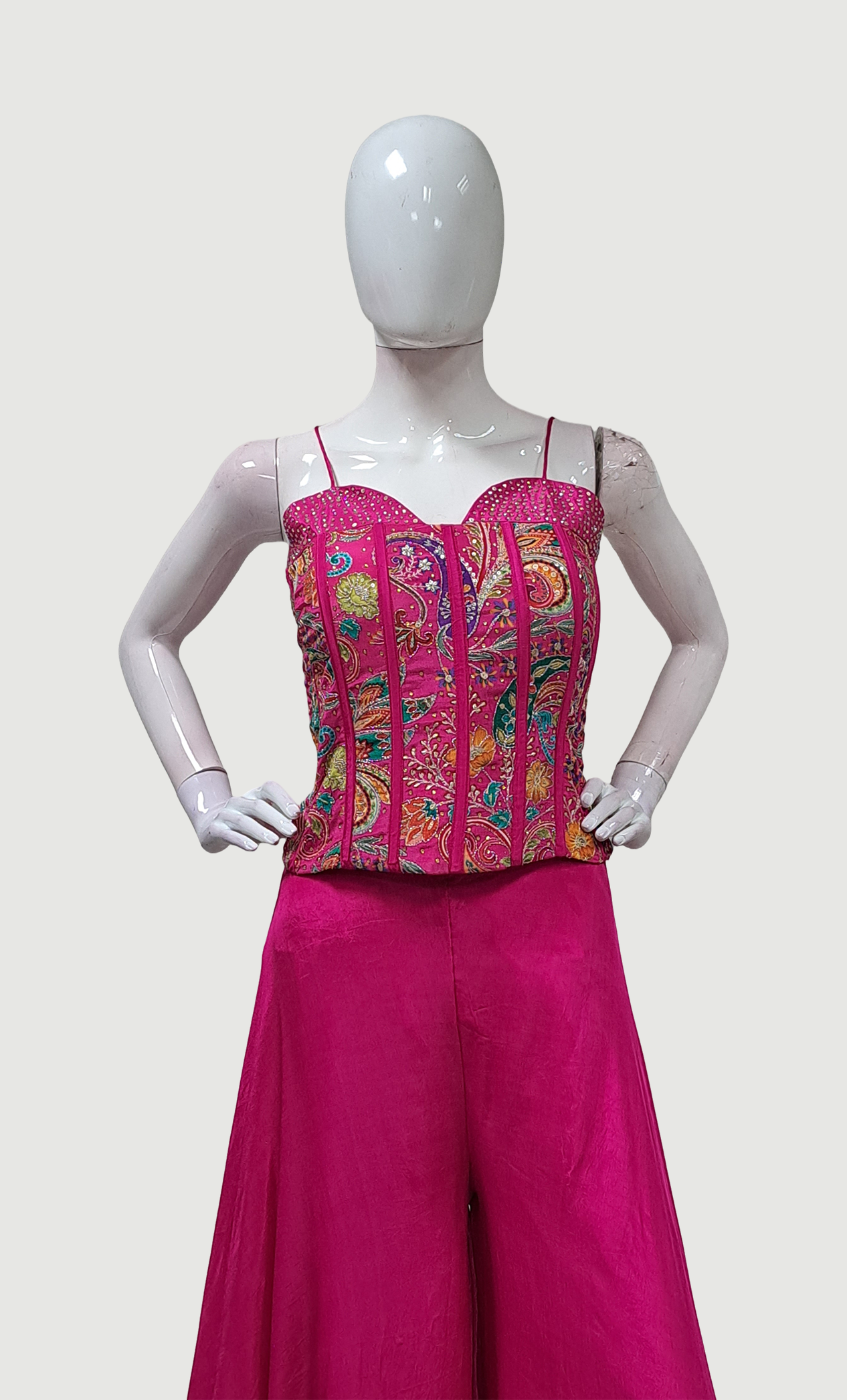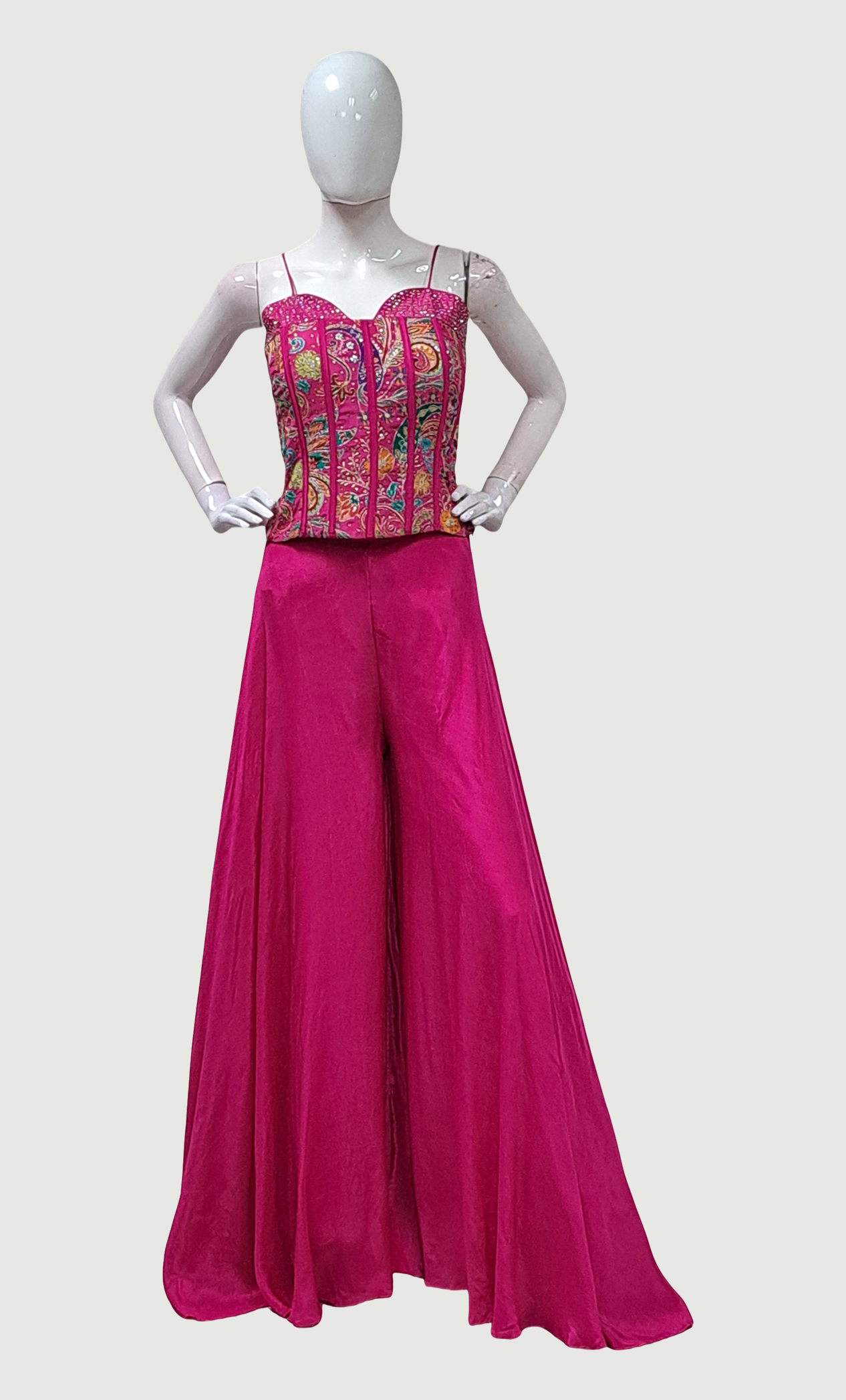 Cerise Embroidered Palazzo Set
