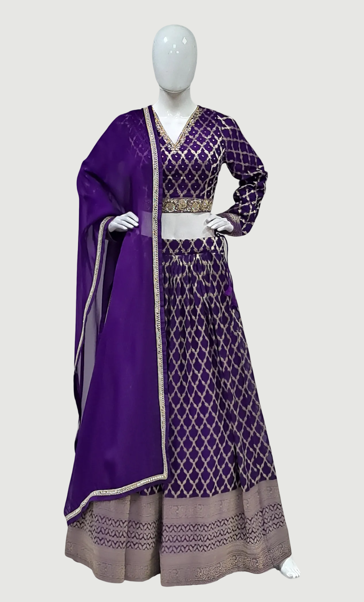 Dark Purple Embroidered Chania Choli Set