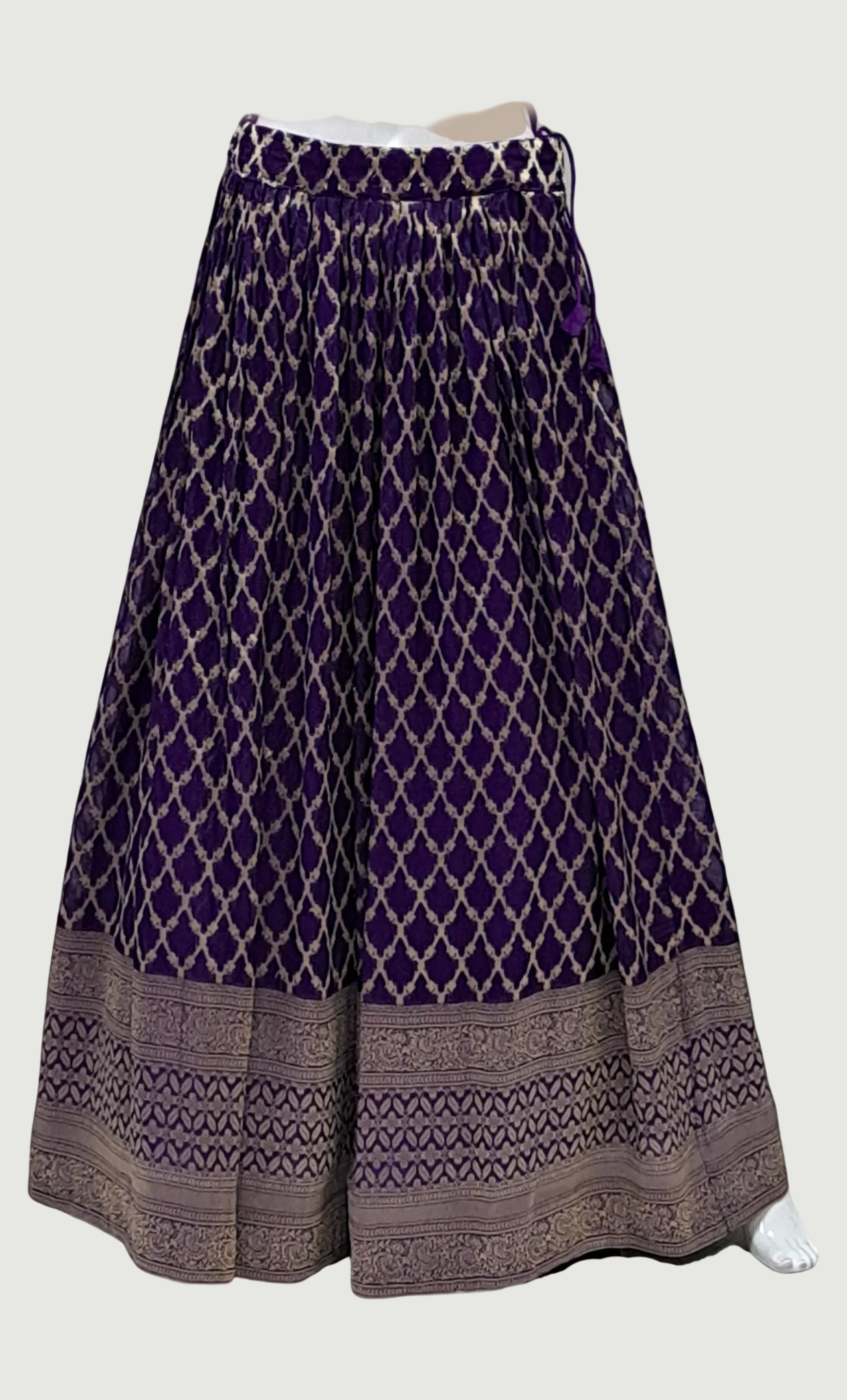 • Cotton silk skirt with gold woven designs, exuding a luxurious, polished feel
