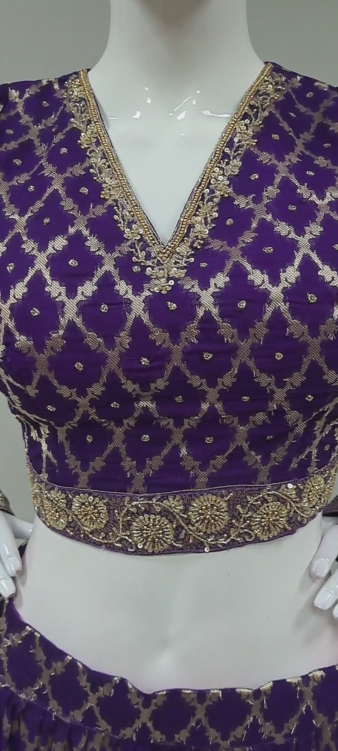 • Gold embroidered beadwork and sequin work along the border, adding a glamorous, sparkling detail