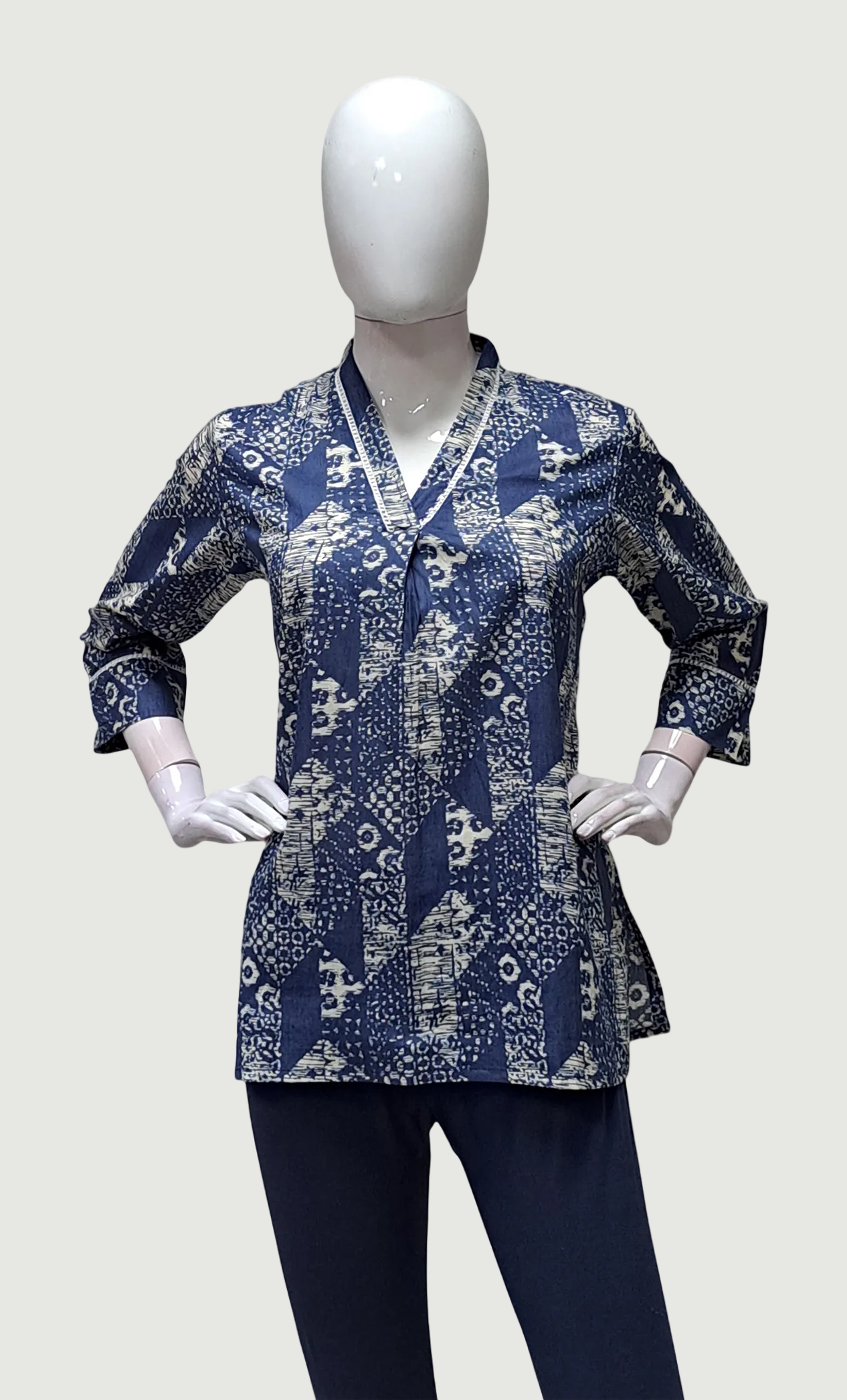 Deep Blue Printed Kurti Top